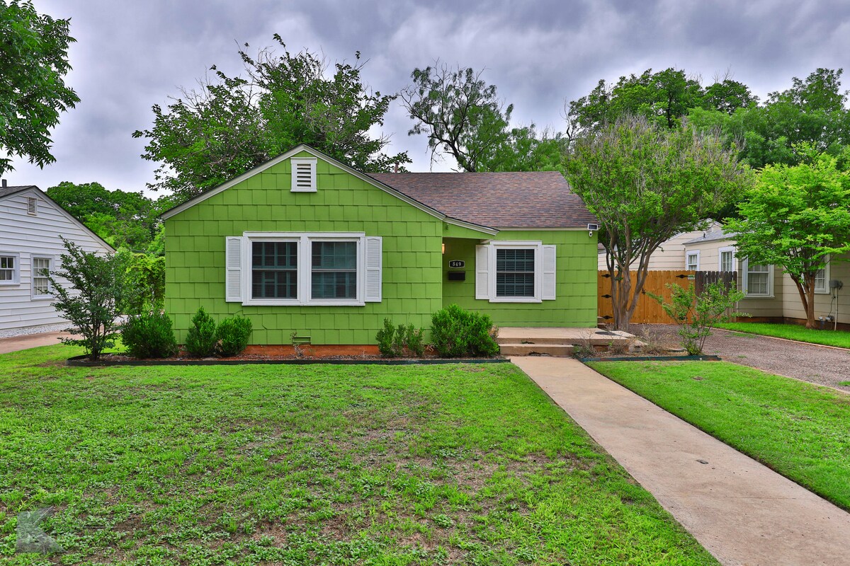 Construida en 1945, nuestra casa es una casa de estilo artesanal ubicada en el barrio Old Elmwood de Abilene. Nuestra casa está totalmente amueblada con un estilo cómodo para que te sientas como en casa. Nuestra casa está a 5 minutos de la Universidad McMurry y a 10-15 minutos en coche de ACU y la Universidad Hardin-Simmons. Acceso de huéspedes Los huéspedes pueden utilizar todo el alojamiento, incluidos ambos dormitorios, cocina, sala de estar, comedor, lavadora/secadora y patio trasero. Llegada autónoma con cerradura inteligente.
