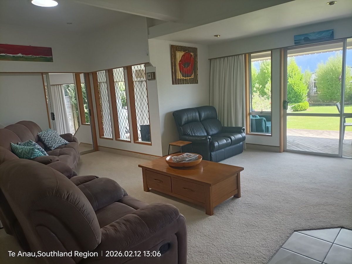 Welcome to our beautiful home, a perfect base when visiting Fiordland. Location is key and you won't be disappointed. A Short stroll to the shops, restaurants and lake Te Anau. Fantastic indoor outdoor flow, bbq area, small reserve beside house where children can play and room for your boat. A great modern kitchen, well equipped . You will love our luxury retreat, with cosy gas fire looking out to beautiful mountain views. Te Anau is the ideal stop over to experience Milford & Doubtful Sounds.
