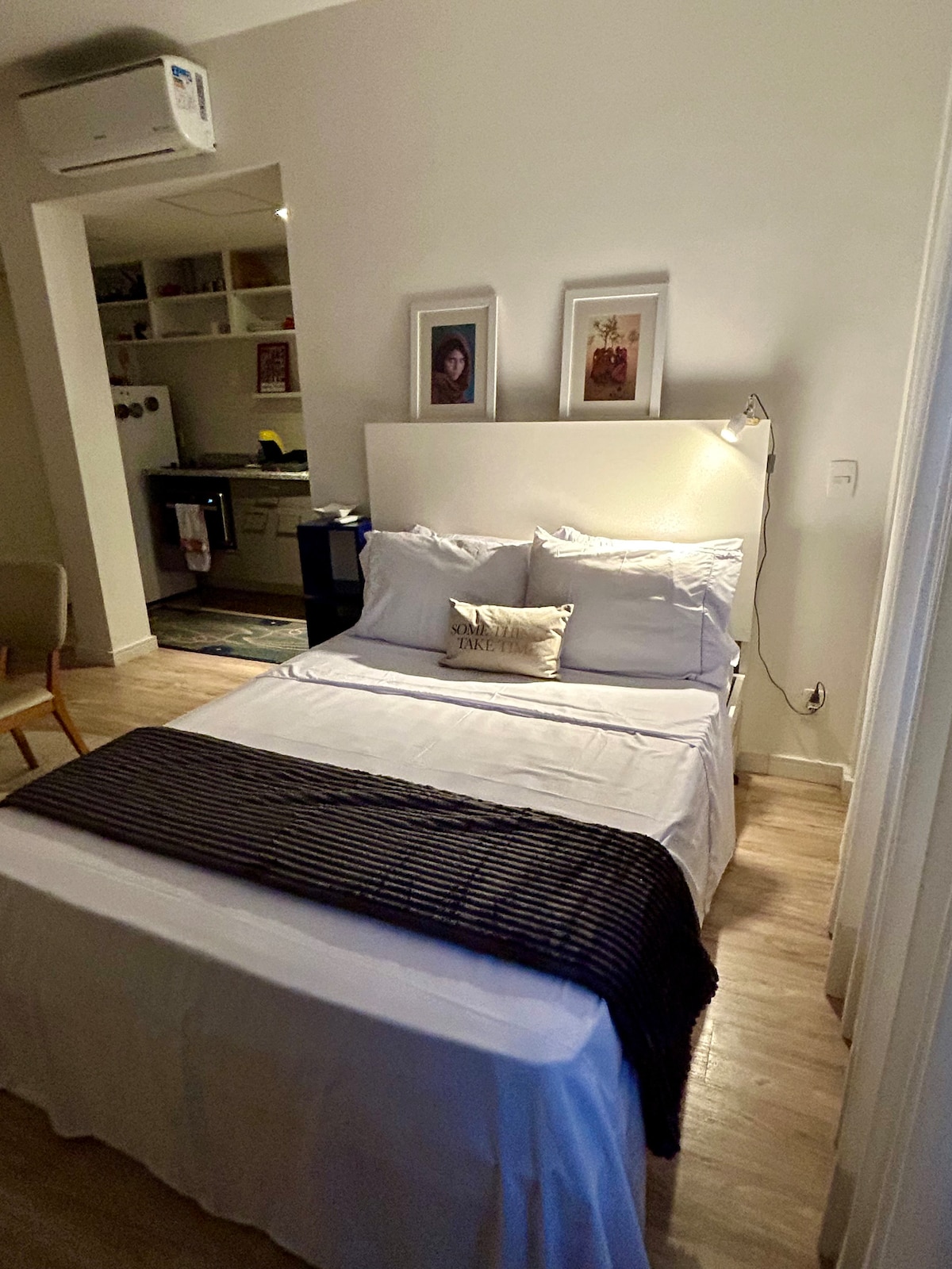 Ático con balcón, tipo loft. Ideal para disfrutar o trabajar. Bien ventilado y tranquilo. Acogedor, hermoso, con unas vistas impresionantes desde el piso 19. Bien equipado: sala de estar (aire acondicionado, wifi, smart TV 49, mesa grande), balcón (parrilla portátil, mesa de centro), cocina completa y lavadero. Barrio encantador, frondoso y animado, con una amplia variedad de tiendas, servicios y ocio. El metro de Santa Cecília está a dos cuadras de distancia. Conserje y garaje con valet las 24 horas.