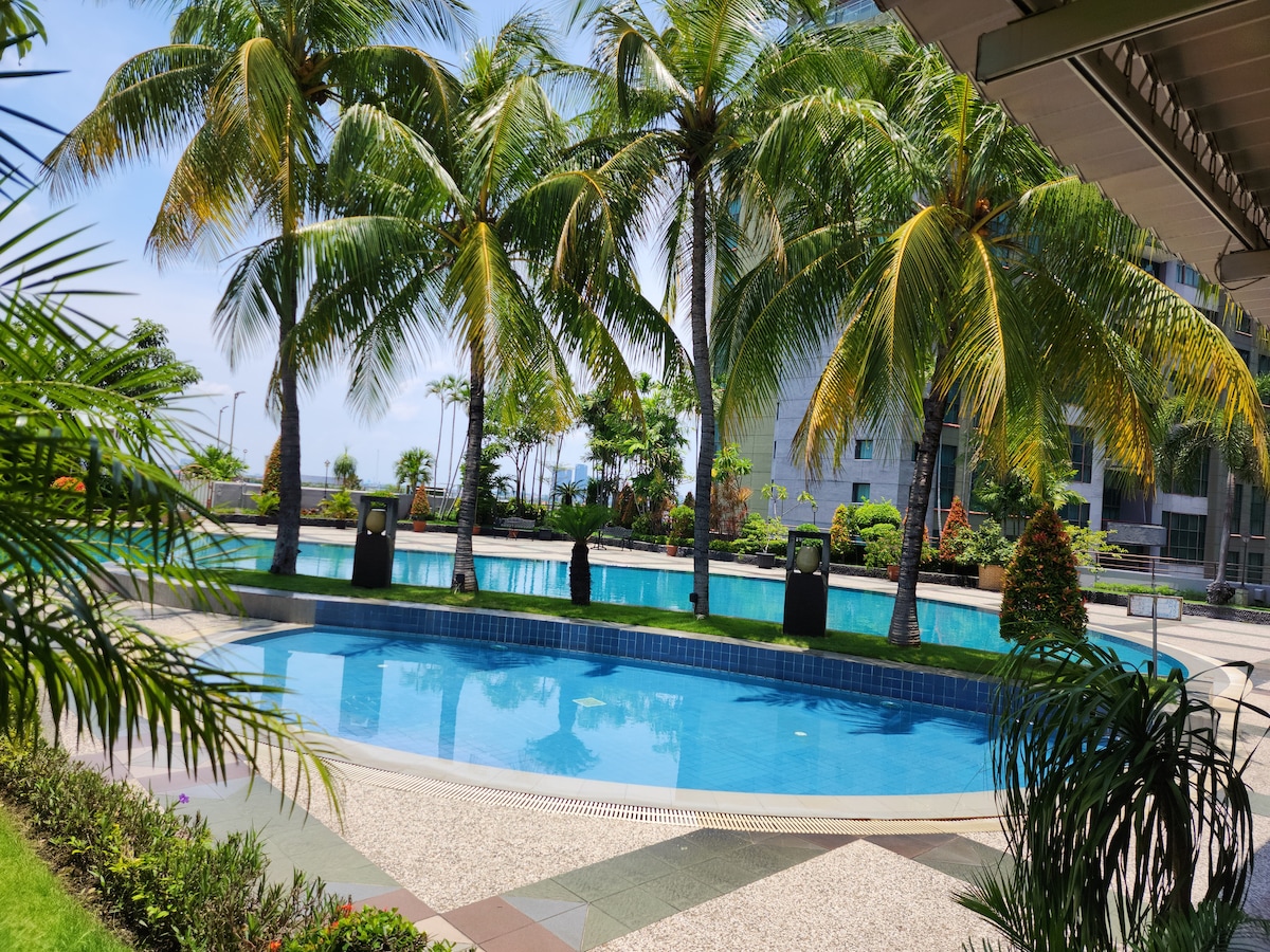 Bienvenido a nuestro lujoso y espacioso apartamento de dos dormitorios en el corazón de Surabaya. Ubicado dentro del vibrante Ciputra World Mall, estás a pocos pasos de Starbucks, IKEA, Hypermart y más. Ofrece un ascensor privado a tu alojamiento con cocina totalmente equipada y balcón con vistas a la ciudad para relajarse. Relájate con estilo con servicios como un gimnasio grande, piscina, sauna y jacuzzi. A pocos minutos del hospital Mayapada y el peaje de Surabaya, el aeropuerto se encuentra a solo 30 minutos en auto. ¡Tu máxima comodidad te espera!