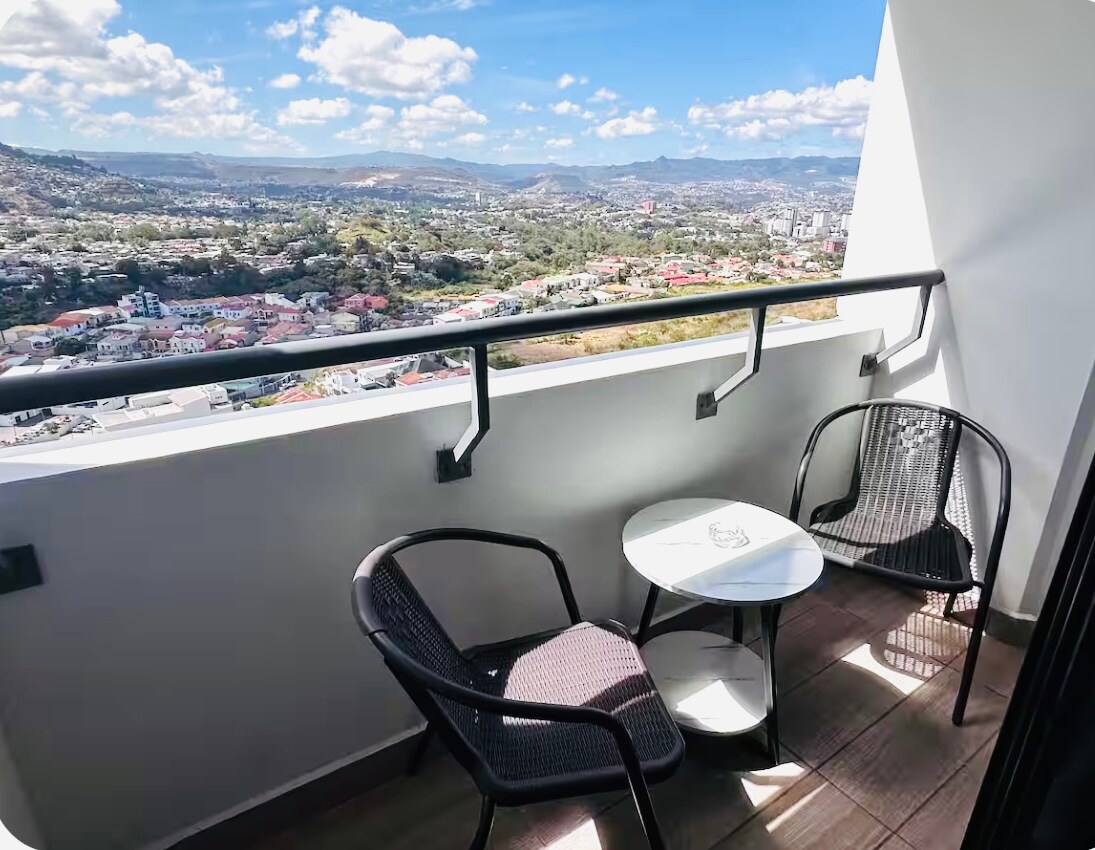 Nivel 16 con Hermosa vista a Ciudad Vive una experiencia moderna y exclusiva en este elegante apartamento ubicado en una zona céntrica y segura de Tegucigalpa Ambiente ideal tanto para viajes de negocios como para estadías familiares. El edificio cuenta con seguridad privada y acceso rápido a puntos de interés de la capital, estando a solo minutos de: Mall Cascadas, Supermercado La Colonia y Walmart, Corte Suprema de Justicia, Embajada Americana, Centro Cívico Gubernamental, Aeropuerto Toncontín
