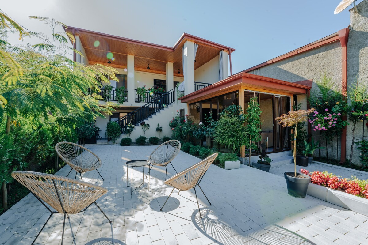 El Boutique Hotel Margoux está en el corazón de Telavi, nos enorgullecemos de ofrecer los mejores alojamientos. Nuestras serenas habitaciones ofrecen vistas impresionantes de las montañas del Cáucaso, mientras que nuestro delicioso desayuno y vinos cuidadosamente seleccionados seguramente deleitarán tus papilas gustativas. Ven a relajarte en nuestra pintoresca terraza y experimenta la alta vida de lujo.