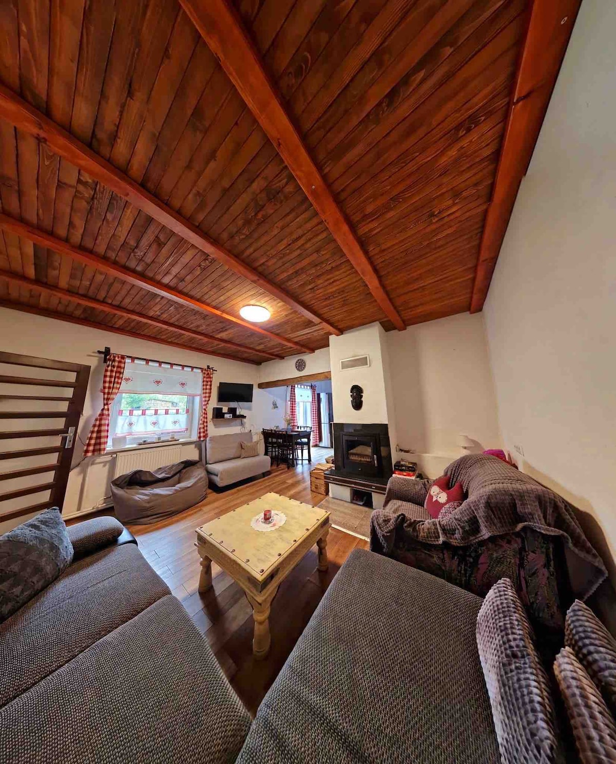 Discover our cozy mountain cabin with a jacuzzi hot tub and Finnish sauna, beneath the majestic Owl Rock, in the popular Slovak Paradise National Park. The cabin has the best location near tourist paths and river Hornad. Explore hiking and cycling trails that wind through valleys and canyons, near breathtaking waterfalls, try ladder routes, or head out to Tomasovsky Vyhlad with stunning views of High Tatras' peaks. And then, after a day of adventure find your sanctuary in our wellness cabin.