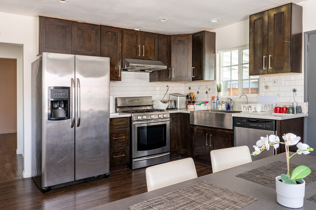 Entra y deja que la relajada energía de SoCal te dé la bienvenida: este elegante alojamiento de 3 dormitorios es perfecto para los viajeros que desean relajación y un poco de estilo. Tómate un café recién hecho, inspirate en el salón de música o enciende la barbacoa para pasar una noche bajo las luces. Pasa tus días explorando el Arboreto del Condado de Los Ángeles, haciendo senderismo cerca de la presa de Santa Fe o montando montañas rusas en Universal Studios, todo a poca distancia en auto. ¡Reserva tu estadía hoy mismo!