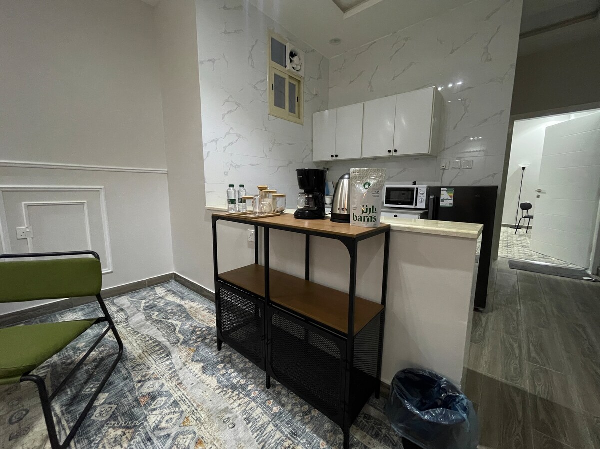 أهلاً وسهلاً.. -المساحة عملية ومجهزة بكل الأساسيات: جلسه هادئه بتلفاز ذكي، WIFI مجاني، غرفة نوم مع سرير فندقي مريح، مطبخ صغير يحتوي على الأدوات الضرورية، ودورة مياه. -التصميم بسيط ومرتب، ويوفر جوًا يساعد على الإسترخاء بعد يوم من التجول أو العمل. -الموقع يسهل الوصول منه إلى أماكن مهمة في المدينة، سواء كنت تزور بغرض العمل أو السياحة. -يمنع التدخين وإقامة الحفلات ❌ أحرص دائمًا على أن تكون الإقامه مريحه✨ لا تتردد بتقديم أي إستفسارات🤍