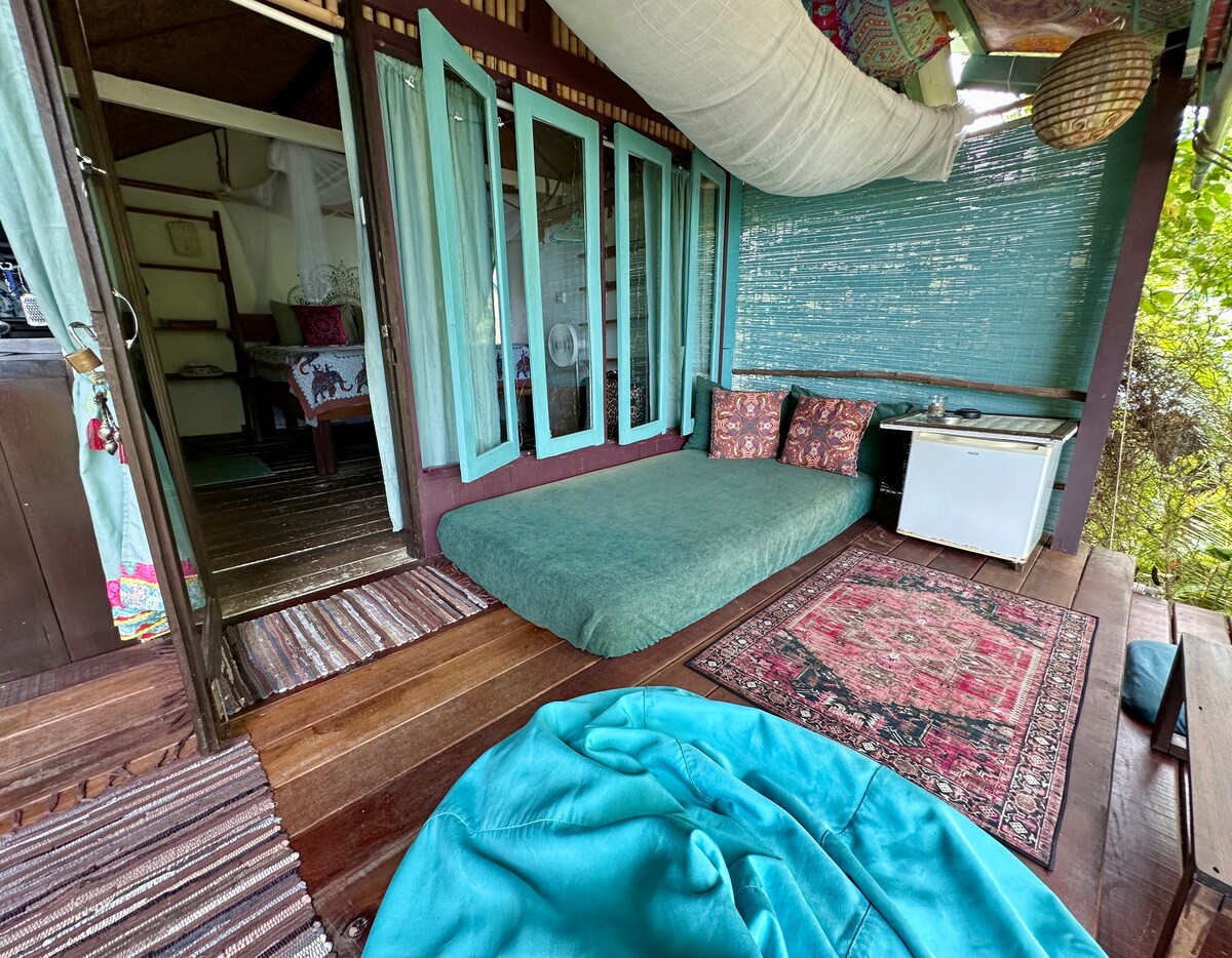 Chaba House es una casa de pescadores de estilo tailandés tradicional, construida sobre pilotes sobre el mar en el pintoresco pueblo pesquero del casco antiguo de Koh Lanta. El alojamiento está hecho de materiales reciclados, como bambú, hojalata y madera. Con su decoración bohemia, obtienes una mezcla de lo antiguo y lo nuevo en esta casa única al aire libre con comodidades modernas. *** ¡NO AIRE ACONDICIONADO! ¡Asegúrate de leer la descripción completa para asegurarte de que este es el alojamiento para ti!***