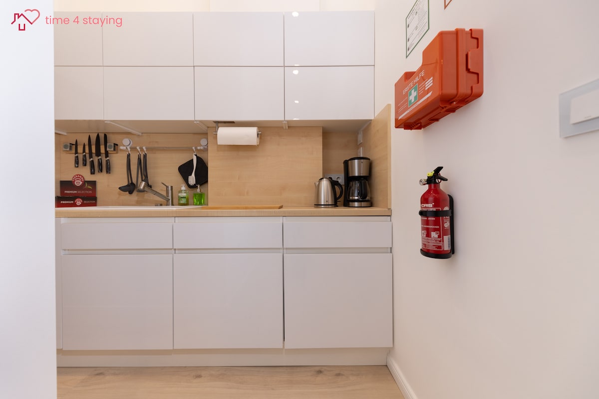 ¿Una escapada a la ciudad o una estadía larga? Con todo lo que necesitas para vivir, estos elegantes estudios de 22 m² están diseñados de manera inteligente, con texturas naturales y acabados únicos. Tendrás una cómoda cama tamaño king de 150 cm x 200 cm en el Reino Unido, un escritorio para trabajar, una cocina pequeña para cocinar sin esfuerzo y un baño moderno. ¿Tienes lavandería? La lavandería comunitaria es tuya para que la uses como quieras. Descargo de responsabilidad: puede que el apartamento de la foto no sea el que te quedas.