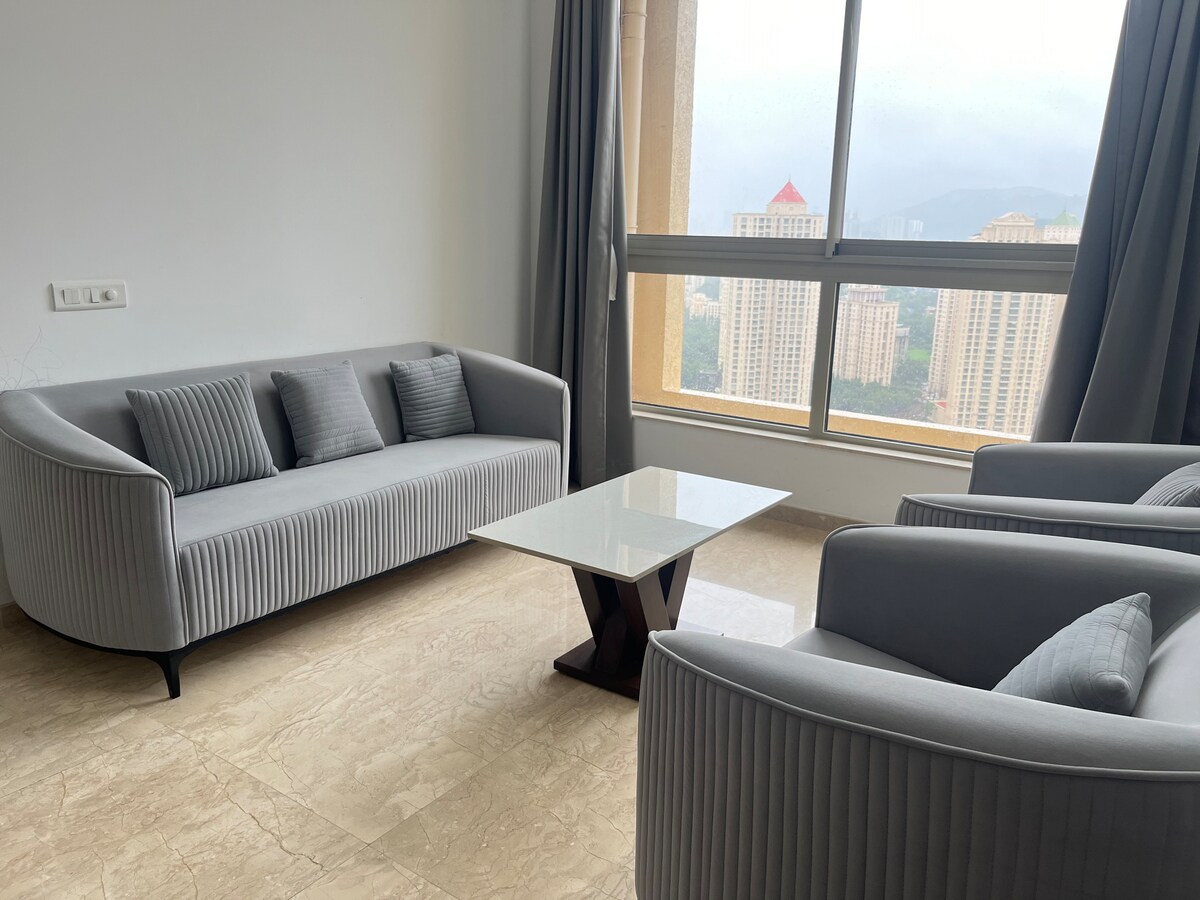 Welcome to a stylish L-shaped studio apartment located on a higher floor in Hiranandani Estate, offering beautiful open views and plenty of natural light. Designed with comfort and aesthetics in mind, the space feels airy, modern, and thoughtfully laid out—perfect for both short and long stays. The studio includes: • A comfortable sleeping area for 2–3 guests • A dedicated dining / WFH space • A fully equipped kitchen with cookware and essentials • Washing machine
