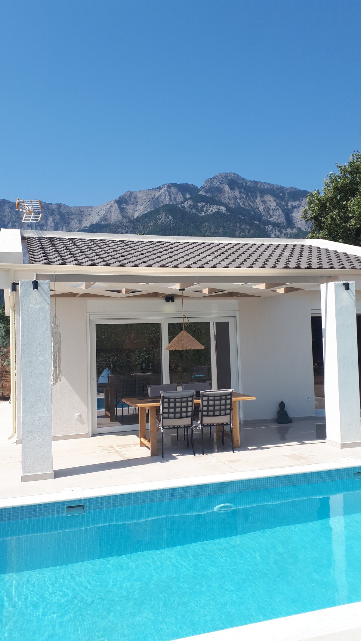 Recién construida en 2021, la acogedora casa se encuentra en medio de un magnífico olivar. Ubicación céntrica y, sin embargo, ideal para los amantes de la paz y la naturaleza. Amplia terraza con piscina privada y magnífica vista de las montañas. Wifi, TV de pantalla plana y aire acondicionado. La playa de arena fina de un kilómetro (Golden Beach) se encuentra caminando. Tabernas hospitalarias, panadería y supermercado en las inmediaciones. Estamos encantados de darte consejos sobre excursiones, restaurantes, etc.