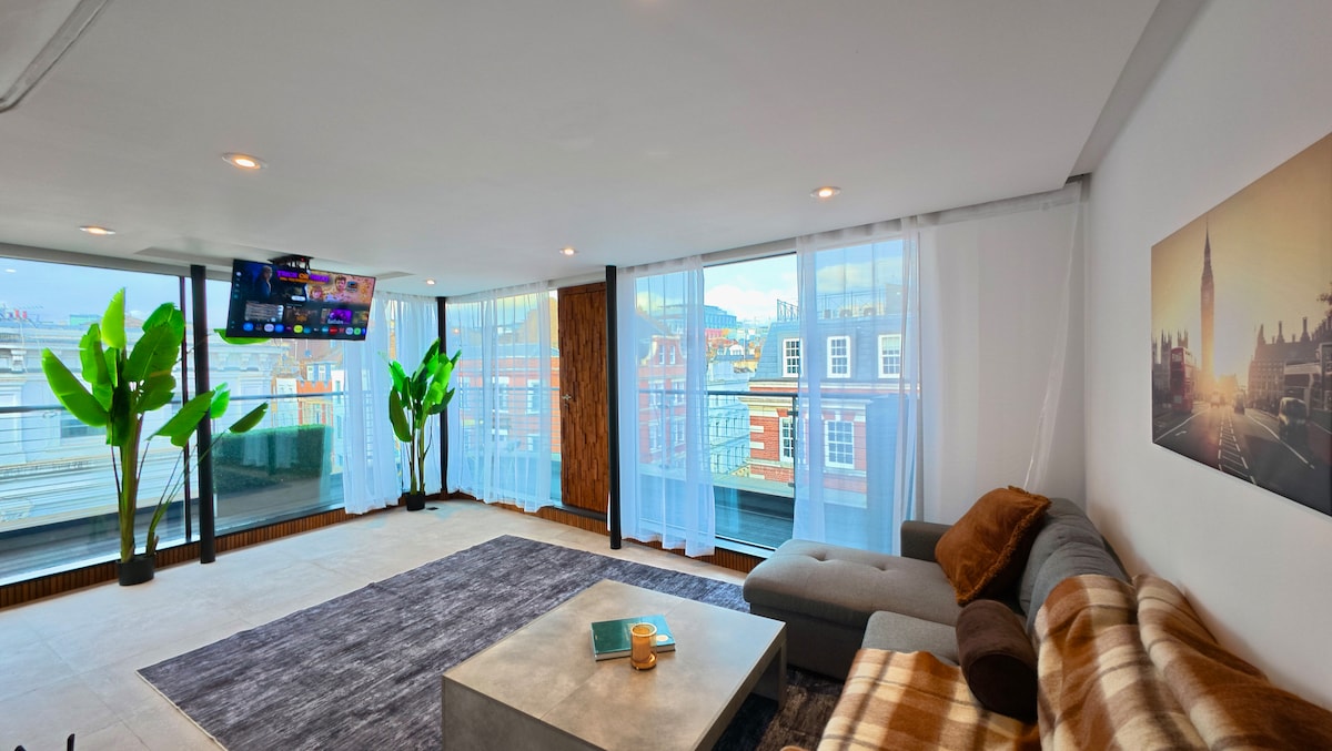 La casa flotante es un lugar único para alojarse en Londres, a poca distancia de todos los lugares de interés de Londres, como el Puente de la Torre y la Torre de Londres (a 5 minutos en tren). El barco está amarrado dentro de un puerto deportivo, lo que significa que hay un movimiento de barcos muy limitado en el agua. La casa flotante está diseñada a medida con todas las comodidades posibles, incluido wifi súper rápido, TV inteligente con servicios de streaming de contenido y camas sumamente cómodas. Los radiadores en todo el barco hacen que esta sea una opción cómoda durante todo el año.