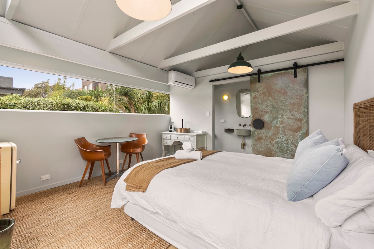 Disfruta de este estudio elegante y céntrico situado a poca distancia a pie de Bondi Beach. Estarás en la arena en cinco minutos disfrutando del sol y el surf. También hay cafeterías y restaurantes cerca, así como convenientes opciones de transporte a Bondi Junction o a la ciudad a solo dos minutos. El estudio de llegada autónoma es completamente privado. Está cerca, pero separado de la casa. Consta de un dormitorio con cama tamaño queen, baño/ducha/inodoro y lavadora, cocina americana y relajante espacio al aire libre.