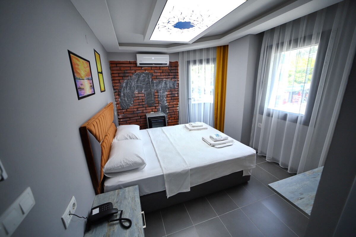 Lulubay Rooms & Suits es un hotel familiar de nueva construcción, que se inaugurará el 15 de agosto de 2023. Con el cuidado del propietario como médico, estarás en buenas manos :) . Nuestras habitaciones y trajes están a solo 30 metros de la "playa de damas", que es una de las playas y marinas de arena más hermosas. Cientos de restaurantes y pubs cercanos están a tu servicio a pocos pasos. Nuestro hotel está justo enfrente de la línea dolmus, a la que puedes acceder al centro de la ciudad en 10 minutos con transporte público.