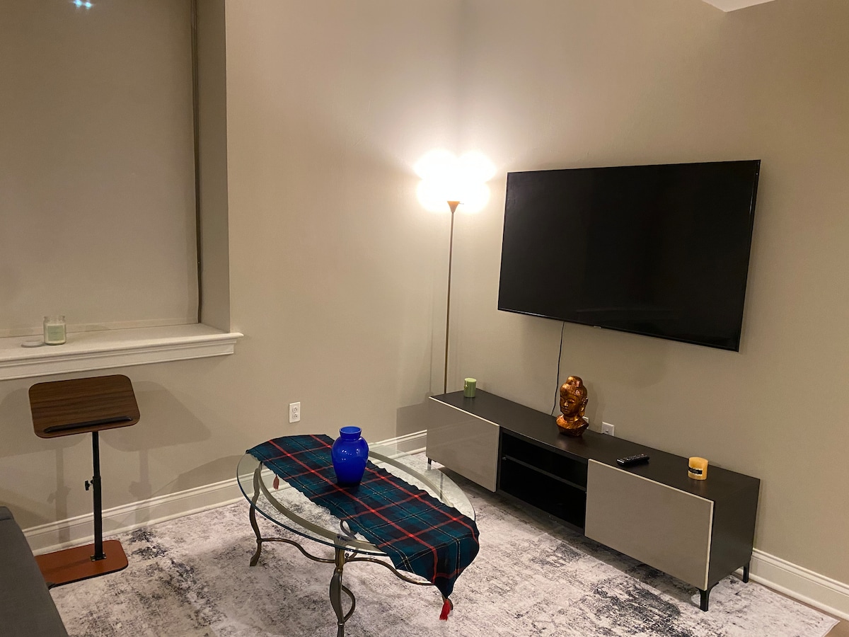 Ven a disfrutar de una suite privada en el tercer piso de esta histórica casa adosada de Baltimore. Es un espacio encantador amueblado con comodidades modernas y mucha luz natural. Ubicado en el barrio principal de Mt. Vernon, a pocos pasos de Penn Station y a solo una milla al norte del puerto interior. Fácil acceso al tren ligero y al Charm City Circulator. Ocupado por el propietario para tu comodidad. ¡Ven a disfrutar de Baltimore con estilo y comodidad!
