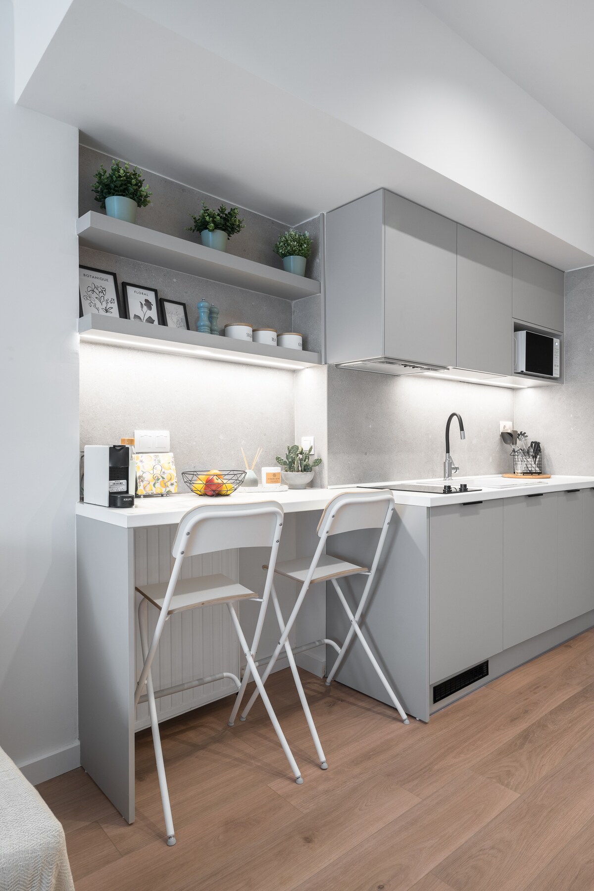 Cocina de la ciudad para todos. Un apartamento acogedor, acogedor y soleado en el corazón del centro que crea sensaciones agradables, estimula los sentidos y al mismo tiempo crea una sensación única de comodidad, relajación, calma, relajación y bienestar. Un espacio con un enfoque en descansar y relajarse de los ritmos de la vida. Los artículos y accesorios con texturas cálidas, materiales naturales, detalles terrosos y cálidos crean un espacio encantador y acogedor que vale la pena disfrutar.