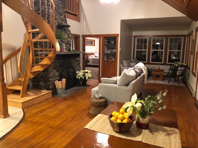 Get away with your whole family at this peaceful home in the country. Hear the frogs chirping in the pond, birds tweeting in the treetops and watch chickens roam around. Enjoy the clear, starry nights while relaxing in the hot tub or cozying up by the fire. Centrally located between coast and mountains. Head a hour north to take the family hiking or on the slopes to enjoy the mountains. Head 40 minutes south to take in the coast and see the iconic Maine lighthouse.