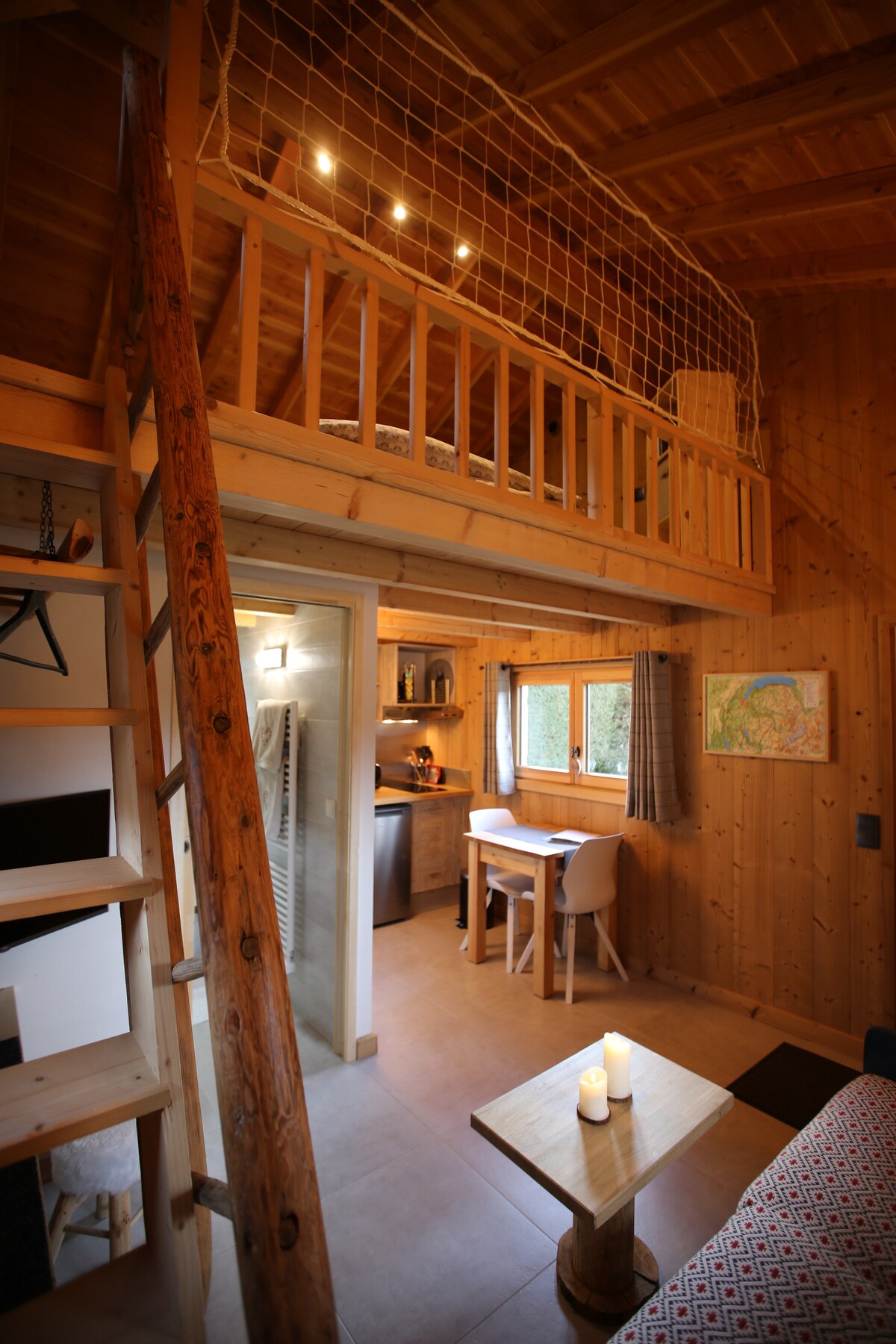Studio de 20 m² très fonctionnel à 15 minutes du Grand Bornand (accessible en bus / avec les skis), 20 minutes de la Clusaz, 30 minutes de Genève et Annecy. Situé au cœur du village du Petit Bornand, au 1er étage d'une maison, avec balcon et accès indépendant. Juste à côté, 1 boulangerie, 1 épicerie, 1 pizzeria, 1 restaurant, 1 station service. Il est composé d'une pièce de vie avec 2 couchages doubles (1 lit double en hauteur et 1 clic clac), 1 cuisine équipée, 1 SDB avec douche et WC.