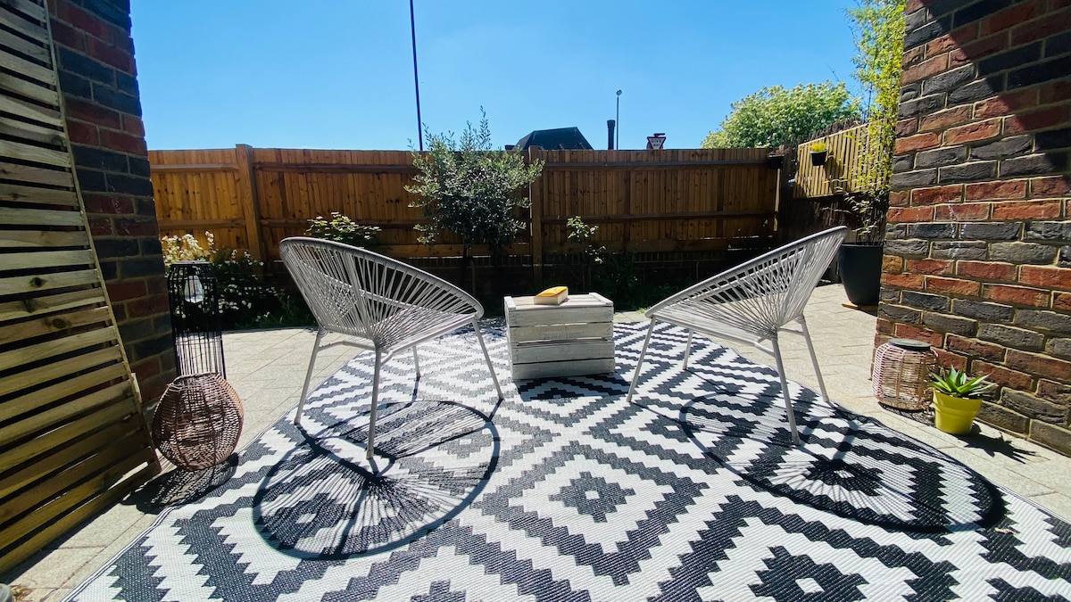 Casa moderna y elegante de 3 dormitorios con jardín