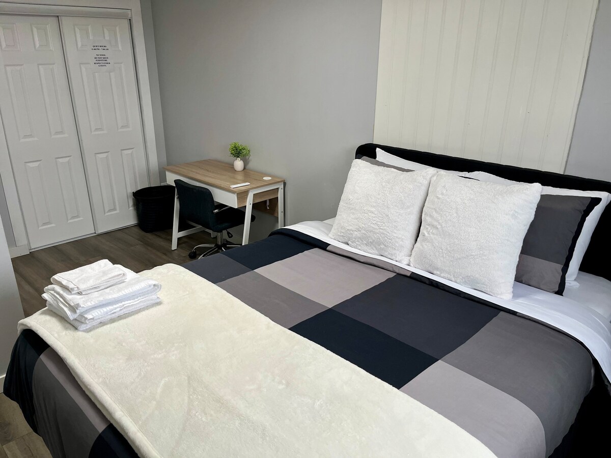 Welcome to Bay Nest Room 2 ✅ Keypad self check-in ✅ Free designated parking (extra vehicles to be notified at booking) ✅ Private room with individual keypad access ✅ Spacious room with study table ✅ HD TV, high-speed fibre Wi-Fi & Netflix ✅ RO drinking water & 24×7 outdoor security cameras ✅ Bus stop at the doorstep ✅ 7 mins to airport ✅ 3 mins to Thunder Bay Expressway ✅ 2 mins to Confederation College ✅ 5 mins to hospital ✅ Near to restaurants, No Frills, Shoppers & Tim Hortons