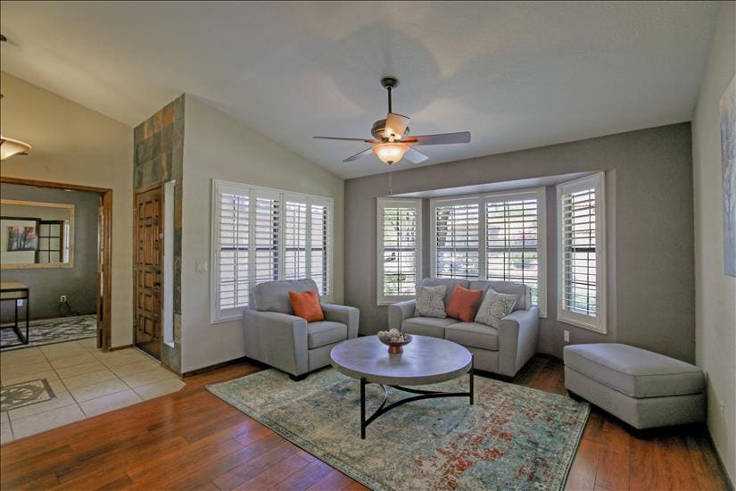 Una casa cómoda en un barrio tranquilo con fácil acceso a los numerosos campos de golf, lugares de interés y restaurantes de la zona de Phoenix/Scottsdale y las zonas montañosas del norte de Prescott y Sedona. Cerca de la I-17 y del bucle 101. Un corto paseo hasta los senderos te llevará a hermosas vistas de los alrededores. Relájate después de un día ajetreado en la refrescante piscina y el spa. Una hermosa mesa de billar proporcionará mucha diversión en el interior, junto con televisores inteligentes en las dos salas de estar principales. ¡Ven a visitarnos pronto!