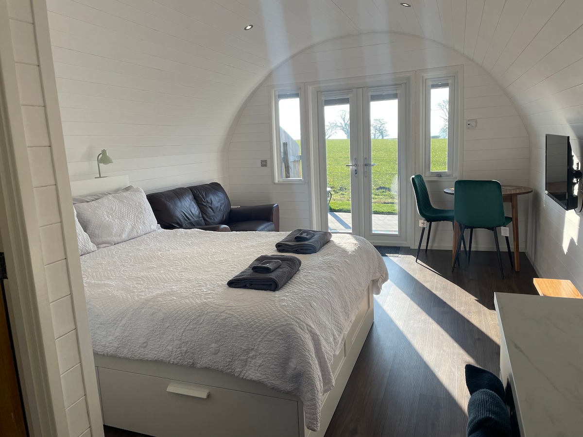 El cobertizo se ha construido a medida, en el prado, cerca de mi pequeño granero reformado. Tiene un ambiente hogareño, con muebles vintage y artículos reciclados. Siempre que ha sido posible, he intentado ser respetuoso con el medio ambiente. Este es un lugar tranquilo y silencioso con hermosas vistas a las colinas escocesas más allá del Solway Firth. Forma parte de una pequeña aldea y de mi antigua granja familiar. Los animales a menudo se mantienen en los campos junto a The Shed. Experimentarás impresionantes puestas de sol y cielos estrellados.