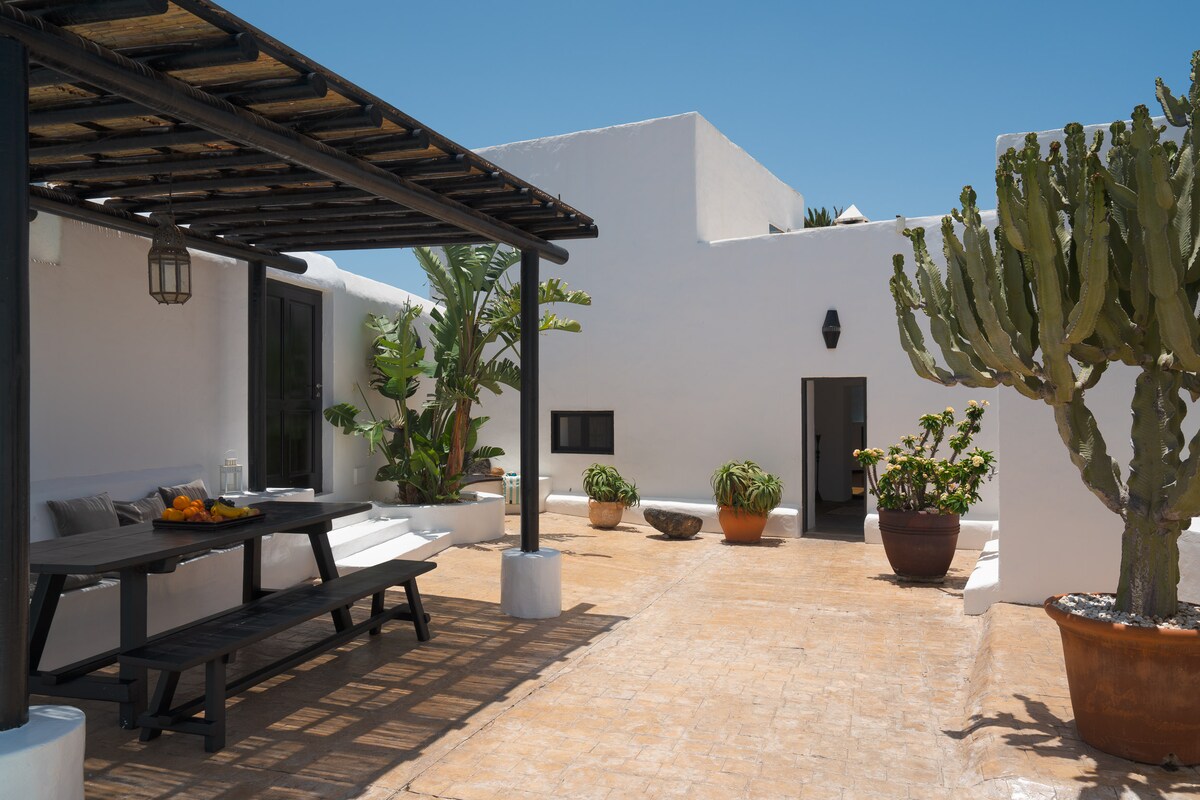 Finca de 200 años con un gran jardín botánico, en el extremo sur de la ciudad de Teguise. La Casa Panamá, parte de la Finca Mimosa, es un oasis de tranquilidad verde, algo poco común en la isla. La finca, de más de 200 años de antigüedad, fue construida en forma de herradura alrededor de un patio de 135 m², al más puro estilo tradicional de las casas de campo. Está rodeada por un gran jardín exótico de 2000 m² con muchas plantas y árboles típicos de la isla, incluyendo 28 palmeras, muchas de ellas de la altura de una casa.