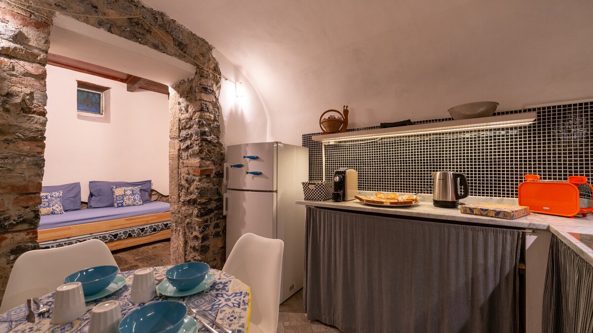 Apartamento independiente y confortable, con acceso directo a amplias zonas verdes privadas. Forma parte de un pequeño núcleo de casas en la colina, con vistas al valle y con el mar en el horizonte. Se llega en cinco minutos en coche desde la salida de la autopista de Recco y con un breve recorrido a pie, incluyendo una escalera. Acceso privado; baño con ducha y bañera; sala de estar amplia y luminosa con sofá cama, cocina americana, dormitorio doble. Bonita pérgola y jardín.