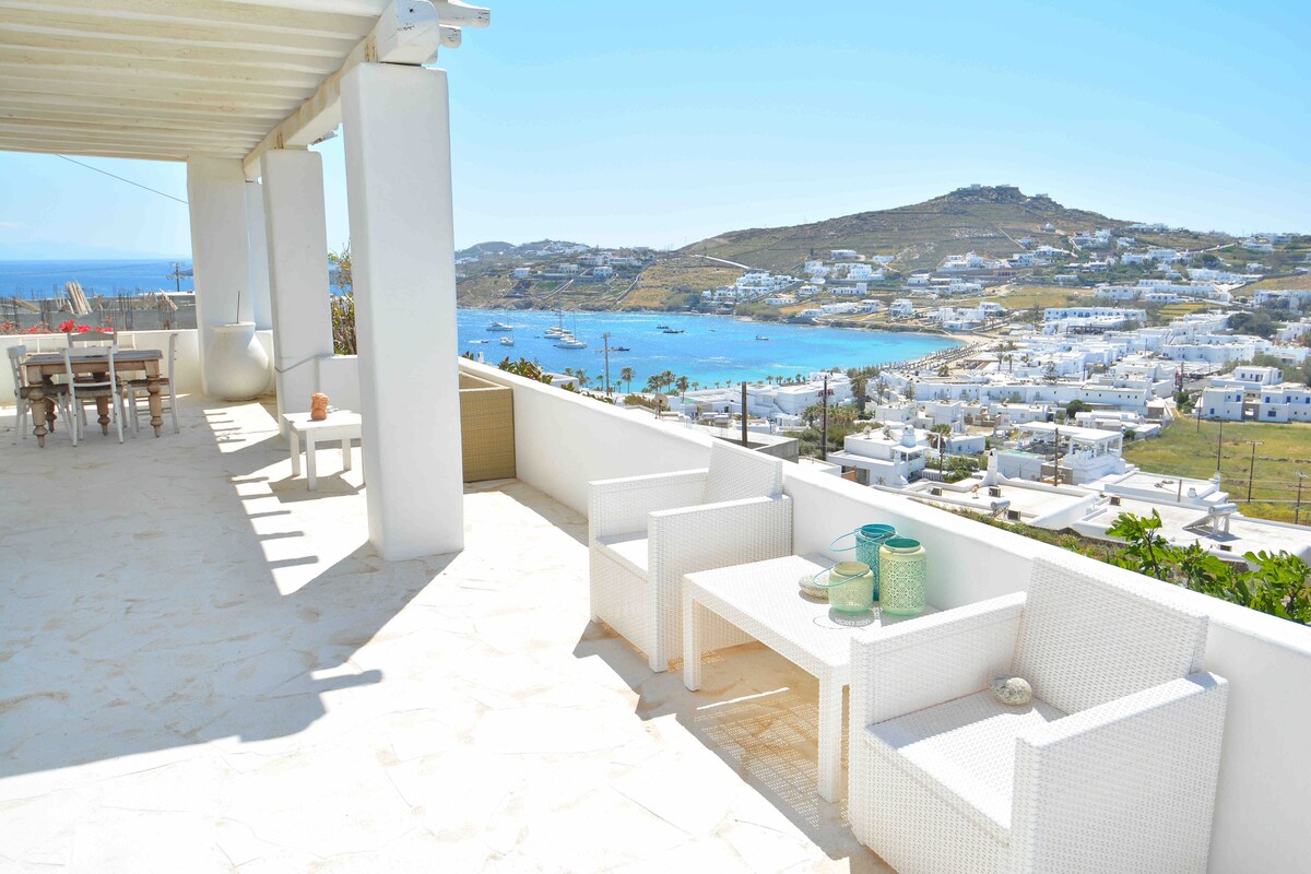 Loveliest view 360" we are located 7 min stair-walk from the center of the town or 2min from the road with a car , with private big balcony that gives you space to stay out and enjoy our beautiful sea view and garden. A projector is also available for cozy evenings to turn the living room into a comfortable home cinema — perfect for relaxed holiday movie nights ! Wifi cycladic arcitecture fireplace Parking
