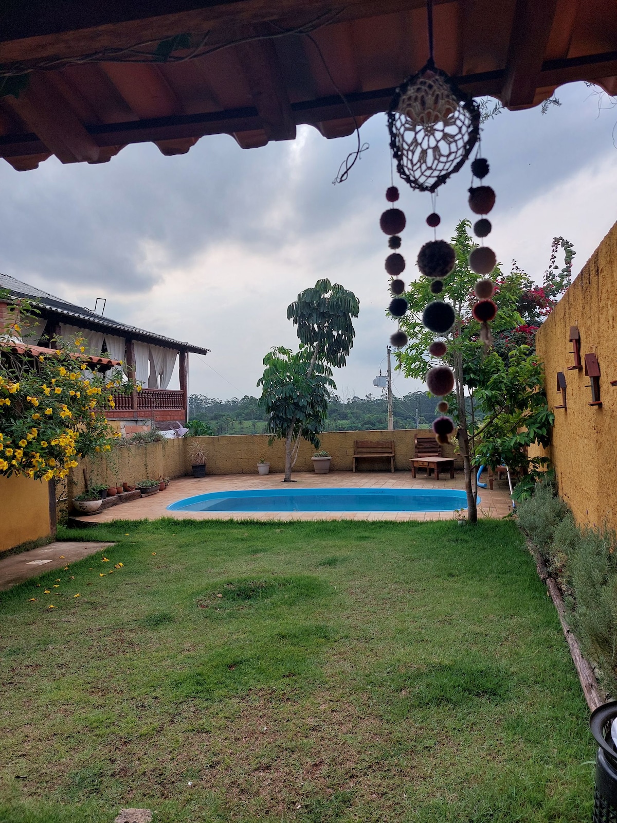 Casa linda, com piscina e área de lazer completa.