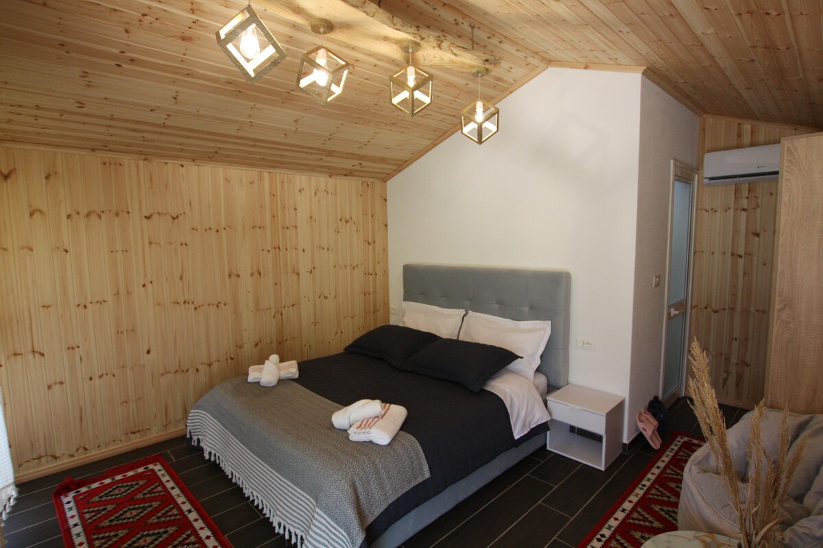 ¡Bienvenido a nuestro acogedor refugio de madera enclavado en los serenos alrededores de Shëngjergj! Esta encantadora cabaña ofrece una escapada tranquila, perfecta para parejas o viajeros solitarios que buscan una escapada pacífica. Relájate cómodamente con muebles rústicos pero modernos, una lujosa cama tamaño king y todos los servicios que necesitas para disfrutar de una estancia cómoda. Sal para respirar el aire fresco de la montaña y sumérgete en la belleza natural de la zona.