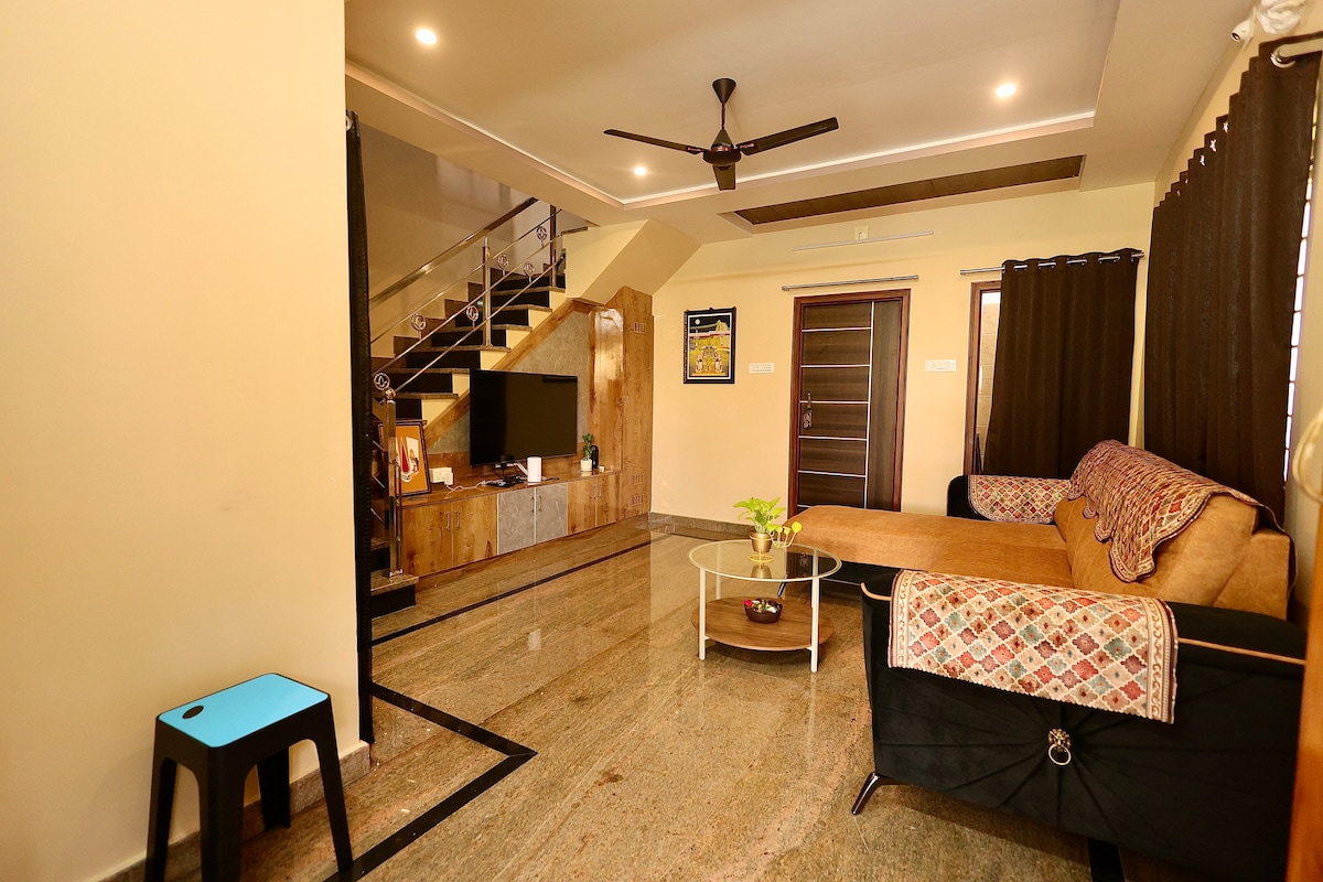 Welcome to Dwaya Villa Stay, a spacious and peaceful 4BHK duplex villa designed for families, pilgrims, friends and large groups seeking comfort and privacy in the heart of Tirupati. Our Villa can comfortably host 11-14 guests with two AC bedrooms and two non-AC bedrooms (3 king-size and 1 queen-size beds) for flexibility. It features a cozy living rooms, Wi-Fi, Power back-up, clean bathrooms, and a fully equipped kitchen. Conveniently located between Tiruchanoor and Tirupati near to Airport too