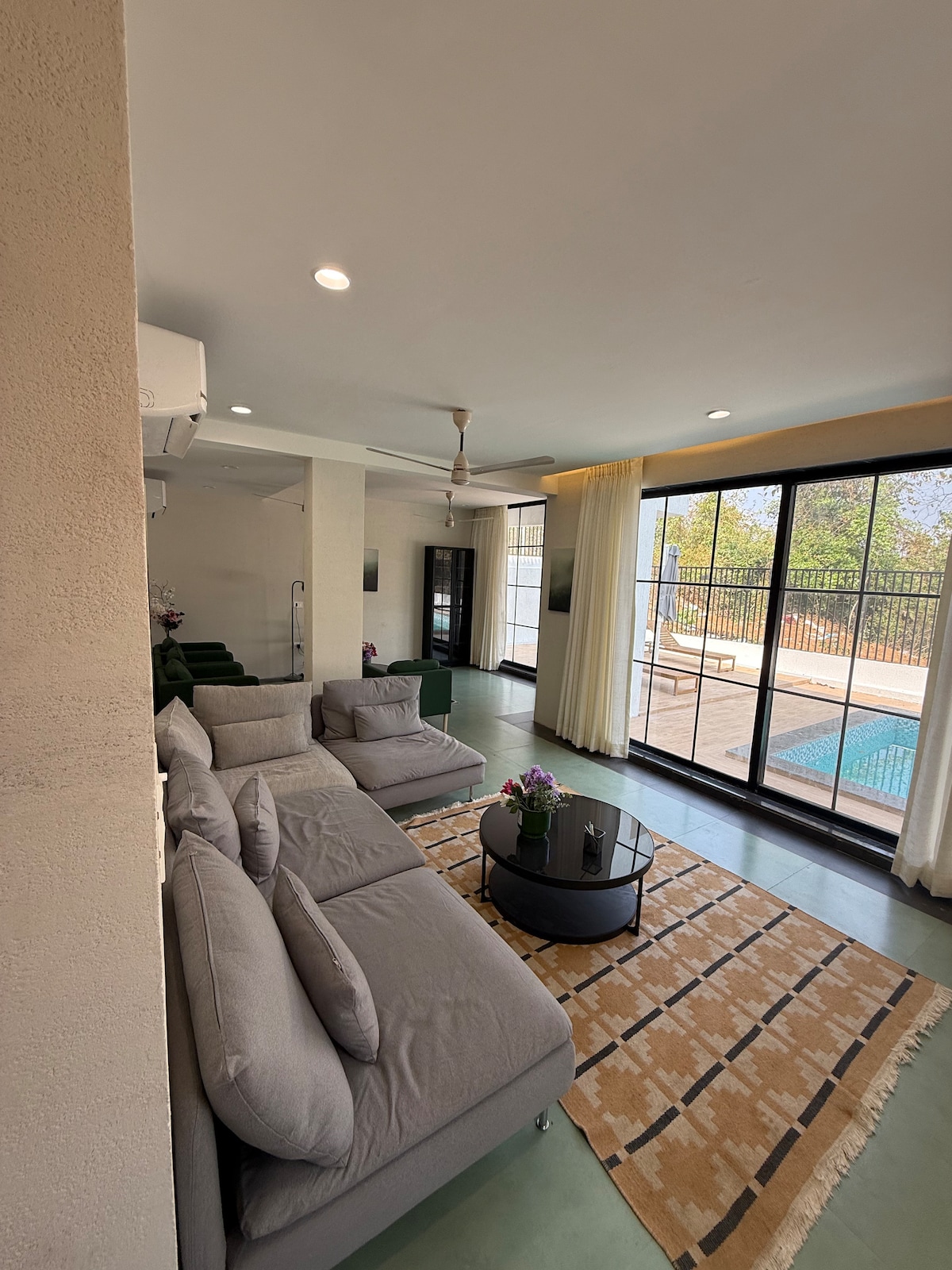 'Villa Elsewhere' es una lujosa y hermosa villa con piscina privada, a solo 60-90 minutos en coche de Bombay. Rodeado de exuberantes vistas verdes de campos, colinas y sonidos de la naturaleza. La villa tiene 3 dormitorios con aire acondicionado en suite, una gran sala de estar con aire acondicionado que se abre a una piscina privada y una gran terraza con un bar. La cocina está totalmente equipada donde un chef puede preparar comidas deliciosas (* cargo adicional). Se admiten mascotas (* tarifa adicional). ¡RESERVA para relajarte en un ambiente tranquilo, para una reunión o para organizar la mejor parte de la historia!