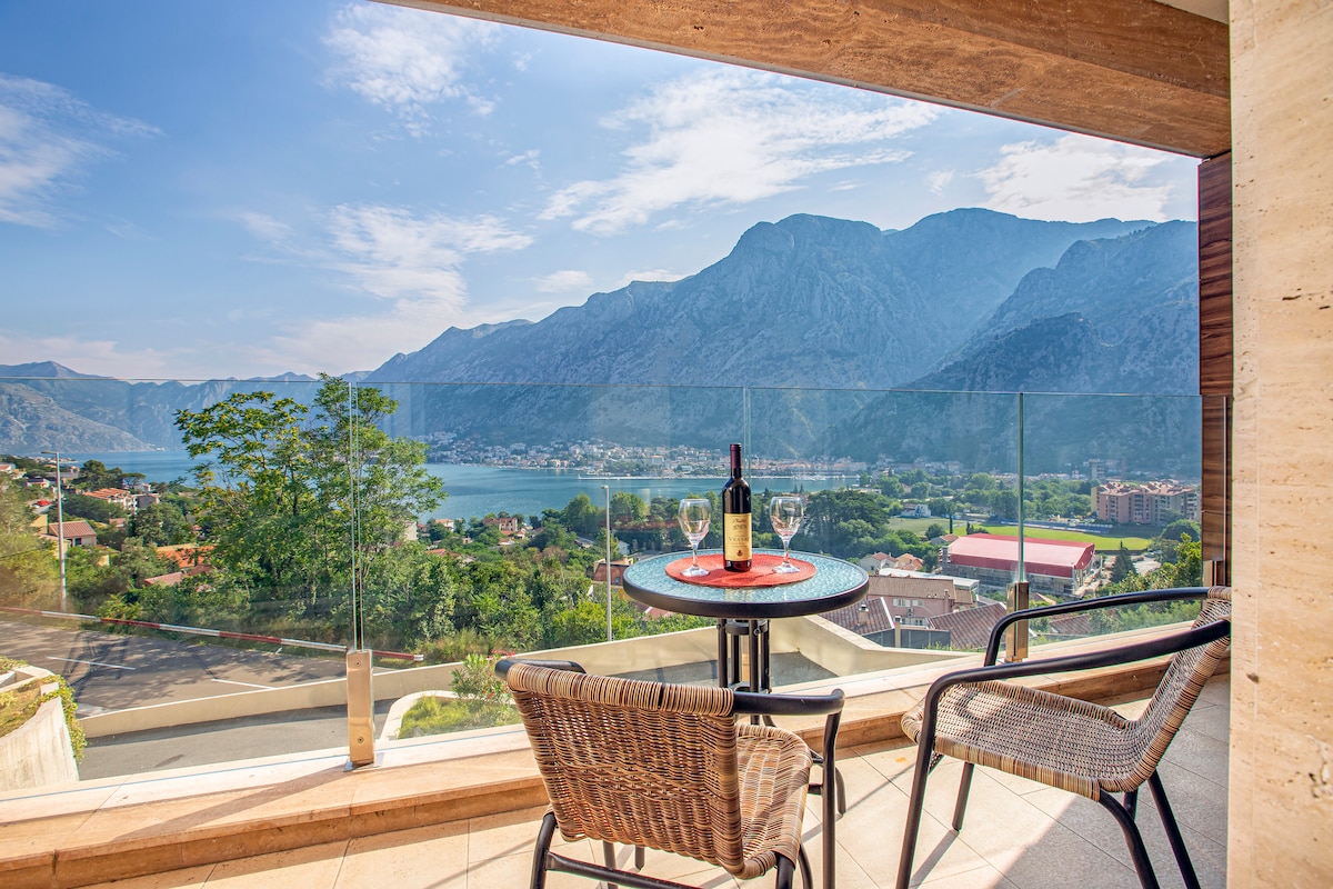 Hermosa vista panorámica sobre la bahía de Kotor, el puerto y el casco antiguo es la primera impresión que obtendrás de este apartamento de 53 m2. Durante la estancia disfrutarás de una vista excepcional de los cruceros de lujo durante la llegada temprano por la mañana o la salida al final de la tarde desde el puerto de Kotor. Este es un apartamento completamente nuevo ubicado dentro de un complejo residencial de lujo, el apartamento está totalmente equipado con estacionamiento gratuito, wifi gratuito y cocina totalmente equipada. A 500 metros del mar y a 1,5 km del centro de la ciudad.