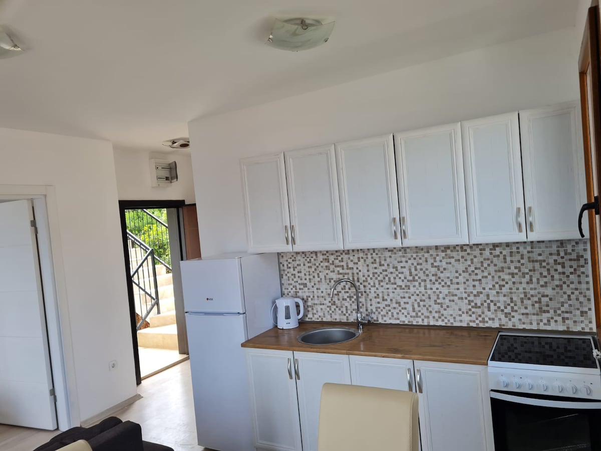 Para una estancia cómoda, ofrecemos un piso privado en una villa privada con una elegante terraza con vistas a las montañas y a Porte Montenegro. La playa se encuentra a 300 m de la villa. Tienda y estación de autobuses a 800 m Hermoso apartamento bien mantenido, lugar tranquilo y perfecto para unas vacaciones relajantes. El departamento tiene una gran terraza y una habitación. La cama es doble + individual. La terraza está rodeada de exuberante vegetación, lo que hace que tus vacaciones sean lo más privadas posible. Acceso de huéspedes cocina propia. Calefacción aire acondicionado