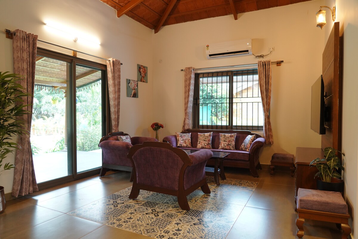 Welcome to a serene retreat designed for ultimate relaxation. Kick back and unwind in this calm, stylish space, furnished to provide a perfect escape from the everyday hustle. The property boasts a spacious, fully furnished 3 BHK (Bedroom, Hall, Kitchen), offering ample room for families or groups of friends. A highlight of your stay is the private swimming pool, measuring 24x12x4.5 feet. This substantial size is perfect for a refreshing swim, a leisurely dip, or some fun pool games.