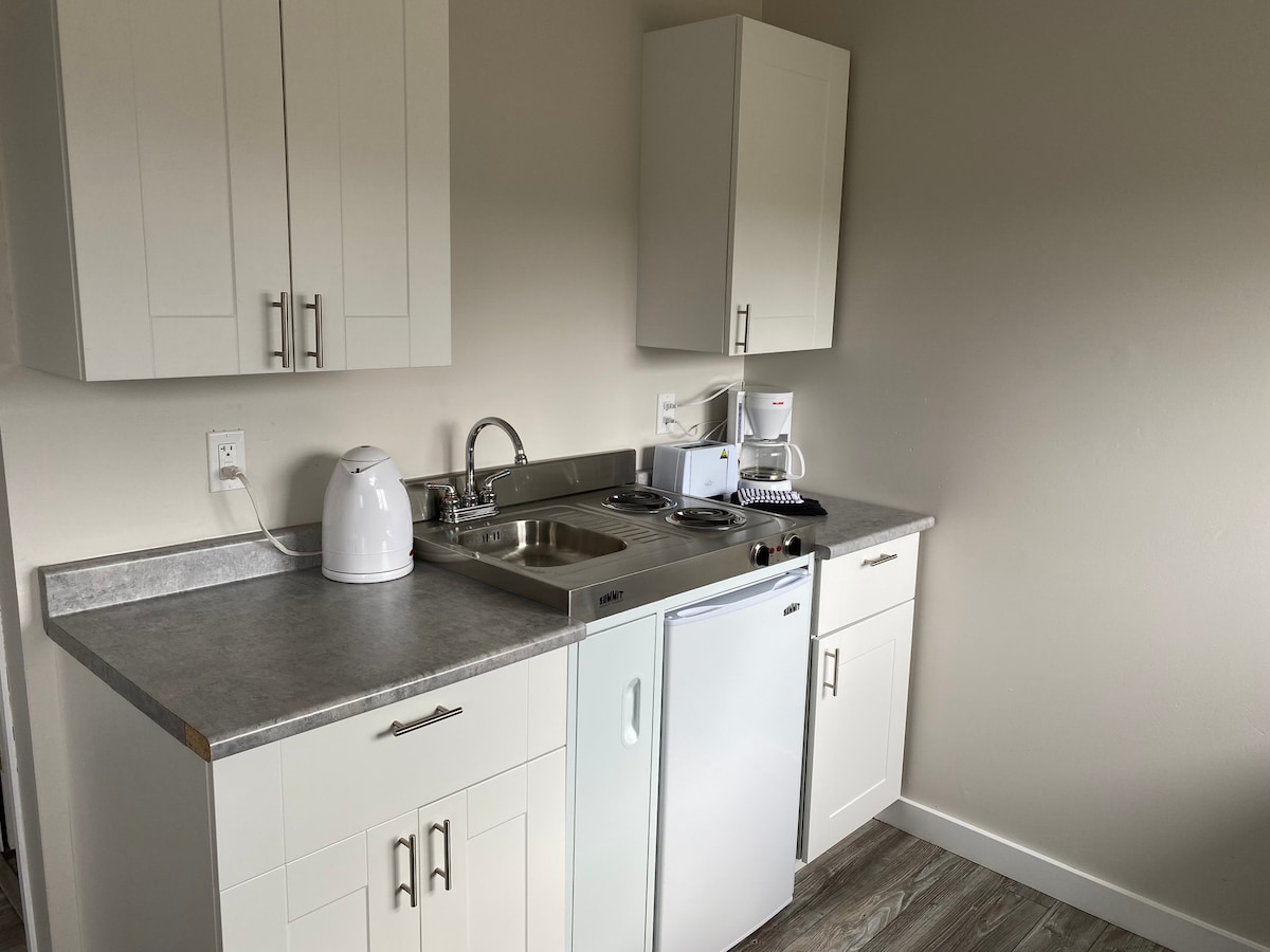 Casa de huéspedes entera independiente con garaje para un coche. Linda casita de huéspedes con excelentes vistas a las tierras de cultivo. Casa de huéspedes con dormitorio de especies abiertas y cocina con utensilios completos. Estaciona tu coche dentro del garaje para un coche. Este pequeño lugar está lleno de luces naturales y tiene un pequeño patio trasero.
