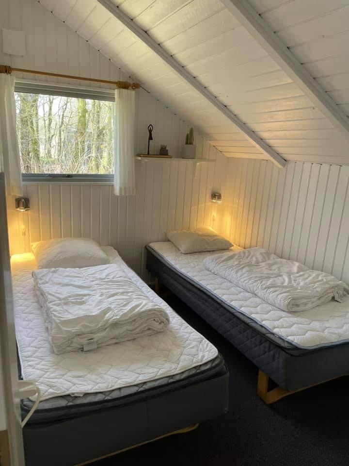 Bienvenido a nuestra encantadora casa de verano en la localidad de vacaciones de Arrild. La casa consta de un recibidor, cocina y salón con estufa de leña y bomba de calor, baño nuevo y dos habitaciones con camas de matrimonio nuevas. La casa de verano se encuentra en una hermosa zona natural, donde desde la sala de estar/terraza a menudo se pueden ver ciervos y ardillas y, al mismo tiempo, hay menos de 200 m hasta la piscina, las compras y el parque infantil. En el jardín hay un columpio, un arenero y una zona para hacer hogueras. Wifi y paquete de TV gratis. Acceso gratuito a la piscina de Arrild Leña gratis para la estufa de leña