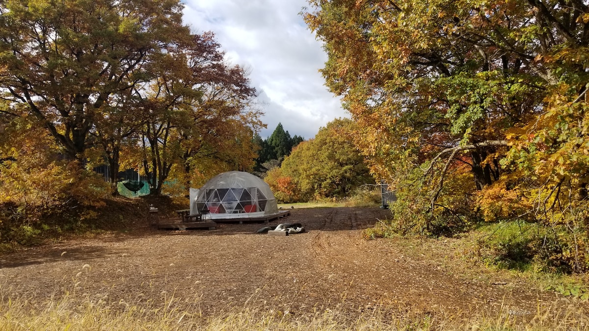 Nearby Yuzawa, a town famous for its ski resorts and onsens, Yuzkyu Resort stands beautifully isolated and surrounded by a breathtaking mountain scenery. Our Dome Tents are the ideal staging point to explore the natural secrets of the Daigenta area through fishing, kayaking, river swimming or hiking.