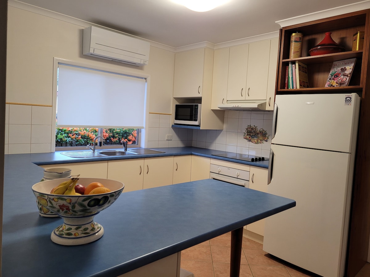 Relájate con toda la familia en este alojamiento tranquilo. Cerca de Grammar School, St Vincents Hospital, centro comercial Range. Las escaleras anchas y fáciles lo llevan a esta unidad del primer piso. El balcón da la bienvenida al sol de la mañana y a la sombra de la tarde. 4 dormitorios, todos con ventiladores, dos camas tamaño queen y dos camas individuales y otra cama individual tamaño king, siéntete cómodo. El cuarto dormitorio funciona como una oficina completa con un monitor. El baño tiene un aseo y una ducha separados junto con lavandería.