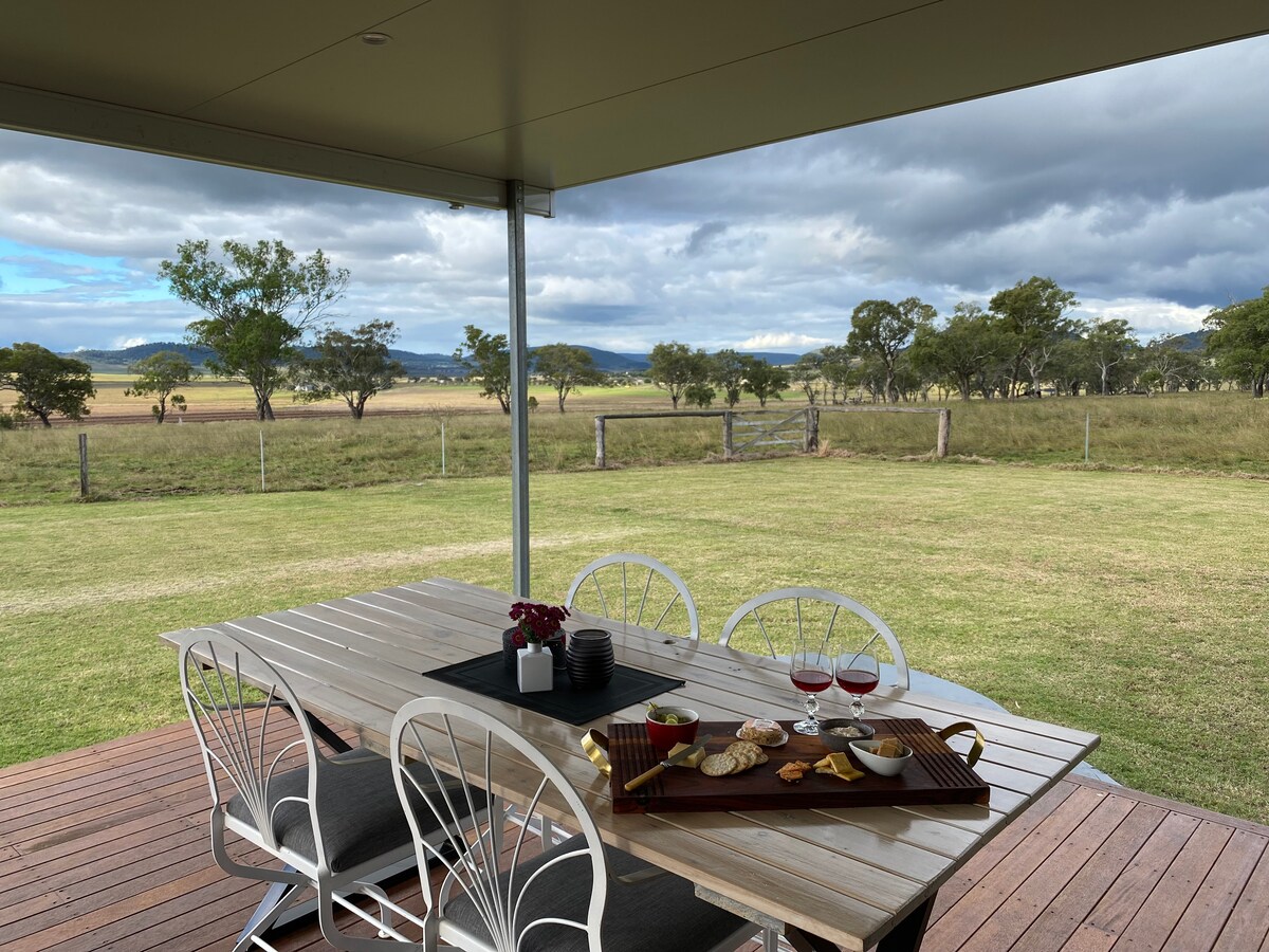 One-bedroom tiny home with modern open plan living on semi-rural acreage. Close to numerous wedding venues, self-contained, linen provided, reverse cycle air-conditioning, wood fireplace with breathtaking sunsets. Entertainment provided by playful ball chasing pooches. Max 2 guests. Owers live in separate homestead. Visiting for a wedding or special event? Makeup artistry is covered by experienced MUA on site. Exclusively for guests of Isobel’s Cottage. Enquire when booking.