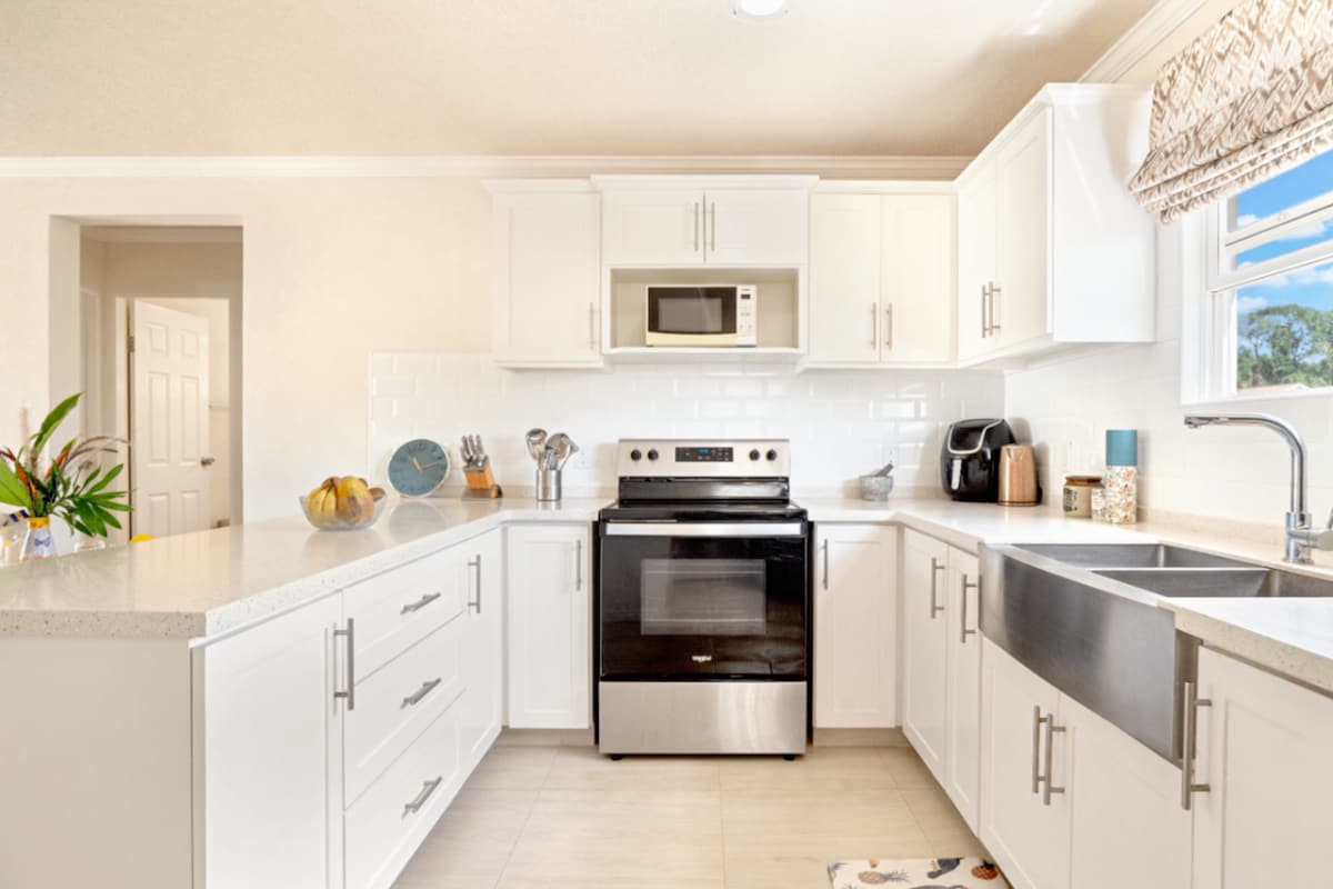 High Trees is a perfect escape for families or groups of friends! Set amidst lush gardens and a reflecting pond, this stylish, air-conditioned 3 bedroom, 2.5 bathroom condo with a communal pool, offers you island life in a gated community. It’s a 6 minute walk to Dover Beach and The Gap, where lively bars and restaurants await you. Oistins Fish Fry and Graeme Hall Nature Sanctuary are nearby. Whether you rent a car (on-site parking) or use nearby public transport, exploring couldn’t be easier.