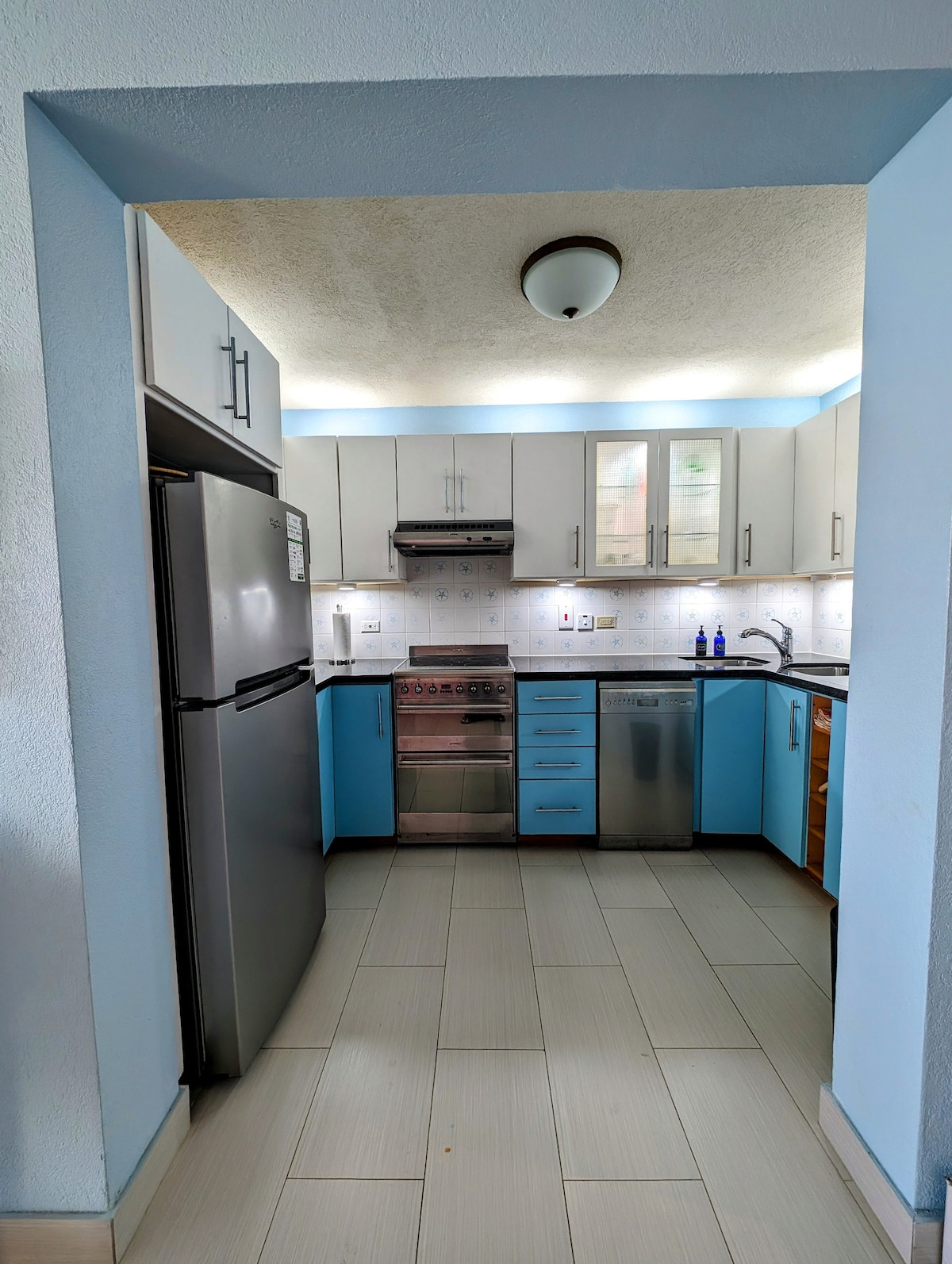 Es una encantadora unidad de un dormitorio de 1050 pies cuadrados. A pesar de ser de un dormitorio, tiene 2 baños completos. Los acabados son magníficos y ofrecen una experiencia verdaderamente lujosa. Cuenta con una amplia terraza con ventilador de techo, una cocina totalmente equipada y aire acondicionado en todas partes. Vistas parciales al mar. La unidad incluye una plaza de aparcamiento. El edificio está situado a pie de playa, está bien protegido, a poca distancia a pie de muchos restaurantes, bares, tiendas, discotecas, hoteles, etc.