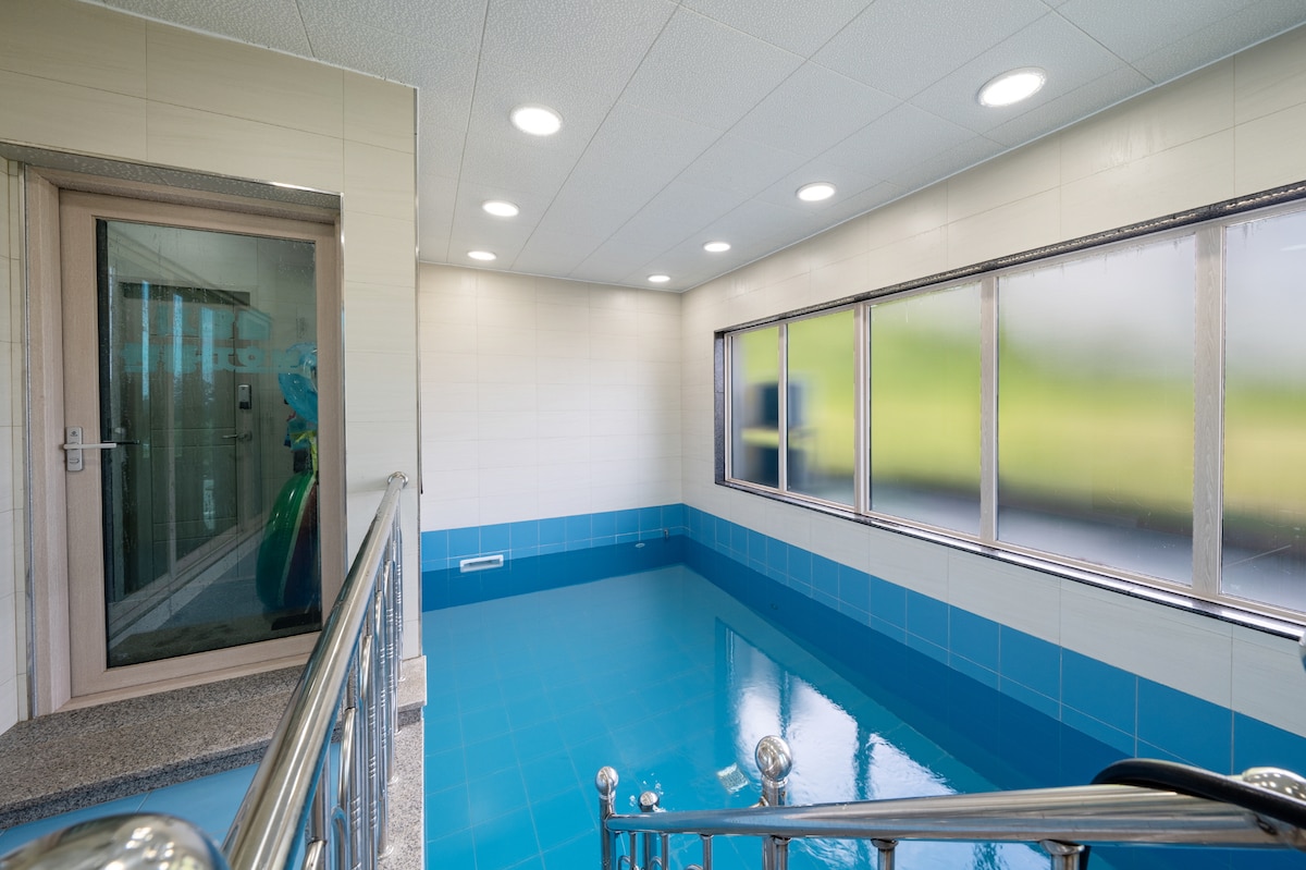 Secuencia Aval/ Villa privada con piscina/ Piscina de agua caliente las 24 horas durante todo el año (gratis)/ Han Dam, Gwakji a 5 minutos