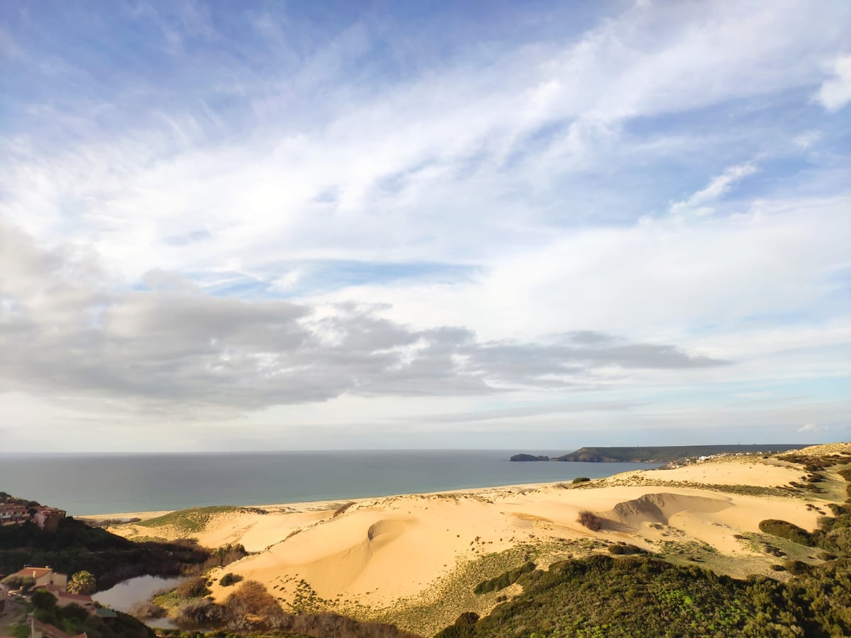 Appartamento panoramico in villa composto da: una camera matrimoniale, un bagno, una cucina/ soggiorno con divano letto da una piazza e mezzo e un terrazzo coperto dal quale è possibile ammirare bellissimi tramonti e rilassarsi alla vista del mare. Le spiagge della Costa Verde meritano almeno una visita : le dune di Piscinas (le più alte d'Europa) vi lasceranno senza fiato! Nei seguenti periodi : 01/04/2025-01/05/2025 e dal 01/10/2025 potrebbero verificarsi delle esercitazioni militari.