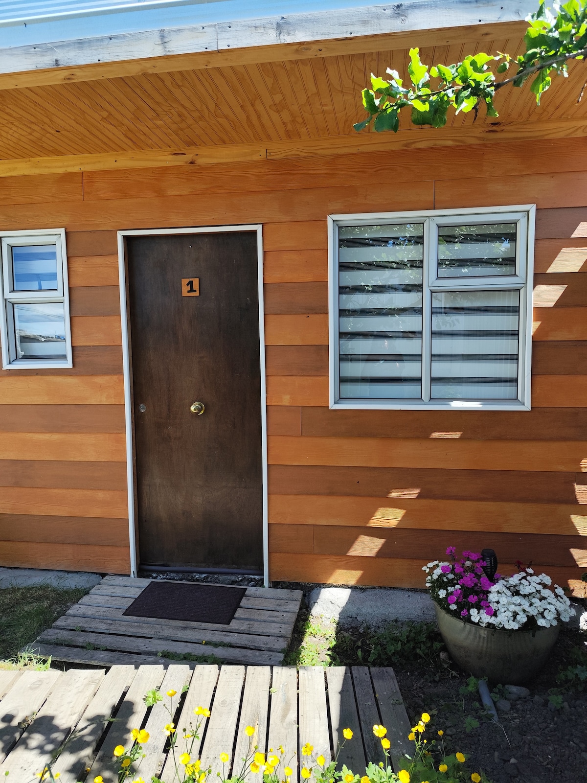 Este alojamiento es una minicaba totalmente independiente, con cocina, dormitorio, baño y cocina americana, con acceso a la zona de jardín y a la zona común de estar al aire libre. Estamos ubicados a 3 minutos a pie de la terminal de autobuses y a 5 minutos a pie del centro de la ciudad. Las instalaciones incluyen wifi gratuito, TV inteligente con canales por cable y tetera y cafetera, etc. También ofrecemos un servicio de custodia de equipaje de pago, ¡para que puedas guardar las maletas mientras caminas! Precio a petición.