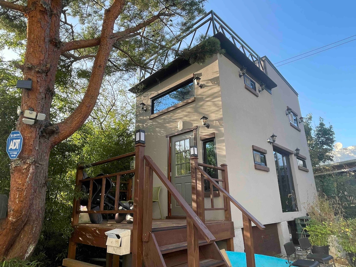 Como casa pequeña, es un espacio de pensión para [familia, amantes, amigos]. Puedes utilizar el espacioso patio trasero para [Privado]. Puedes usar el [amplio patio de césped] como [🔺️solo], para que puedas jugar tanto como [usar la barbacoa] o [niños]. Campo ➕️ deportivo privado * Trabajo de valla de 80 cm Te pedimos que reserves con antelación para usar el quemador. [Quemador de mesa: 10 000 won para 2 personas] Es difícil utilizar la barbacoa en las zonas de fuertes vientos y heladas. Es un quemador de mesa para uso comercial, no un fuego de➡️ carbón. Se añadirán 20 000 KRW por☝️ perro cuando estén acompañados por un perro. [Los perros pequeños y medianos pueden ir acompañados de hasta 15 kilos/hasta 2 perros] La ropa de cama y la desinfección de la zona se reemplazan a diario para mantenerla limpia. Avanzado [Amenities] Gratuito Implementar [Difusor avanzado] dentro de la pensión [Toallas y secador de pelo] equipado [Refrigerador, microondas, cafetera, cafetera, estufa de inducción] Equipado [Utensilios de cocina (juego de cubiertos, olla, sartén, cuchillo)] equipados [Estacionamiento gratuito] Disponible [Mesa exterior] equipada Netflix disponible como cuenta personal > Para obtener más información, confirma tu reserva y te enviaremos un mensaje.