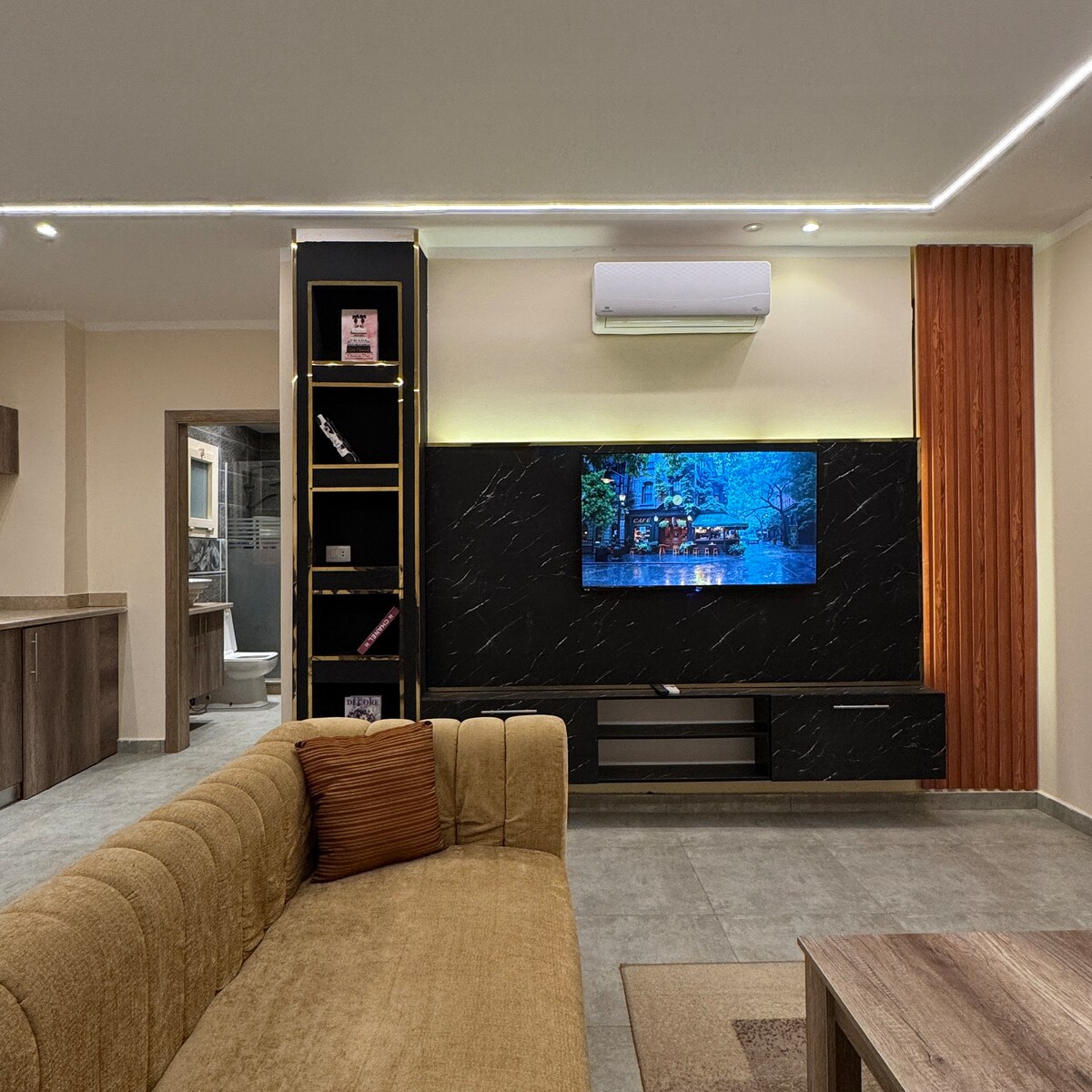 Disfruta de una experiencia elegante y romántica en este céntrico alojamiento. Frente a Dream Beach, a solo 50 pies de la calle turística de los pueblos de Hurghada. Muebles modernos con wifi de alta velocidad, Netflix y YouTube. Este apartamento contiene equipos de cocina especiales, microondas, lavadora, cafetera automática turca, hervidor de agua y complemento completo de café y té. También plancha y tabla de planchar y un escritorio para trabajar a distancia. Romántico dormitorio para amantes y un sofá cama.