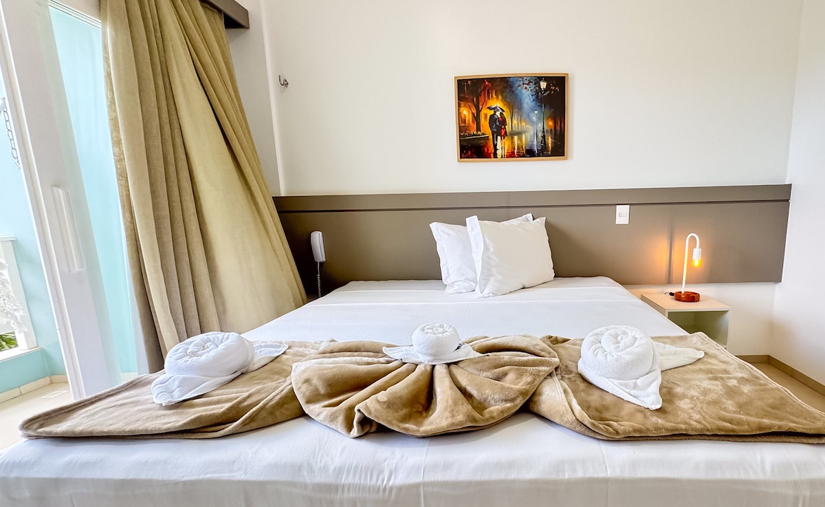 Sua estadia neste quarto aconchegante com banheira de hidromassagem terá muita tranquilidade junto ao espaço oferecido.