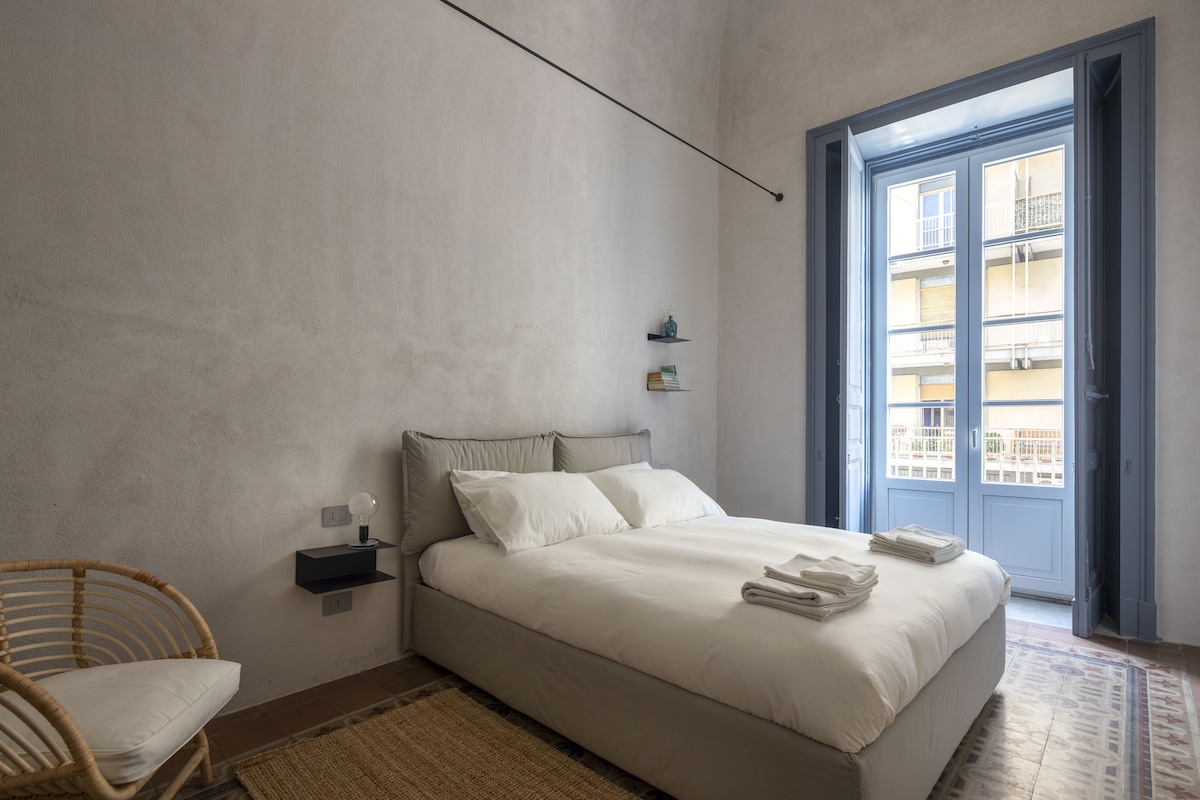 Sumergite en la historia y el estilo en el corazón de Catania. Este elegante departamento se encuentra dentro de un palacio del siglo XIX adornado con frescos originales en los techos. Una oportunidad única para quedarte en un lugar verdaderamente auténtico. Los techos altos abovedados y los seis balcones con vista al centro histórico aportan luz natural y una sensación de amplitud. A solo 5 minutos a pie de Piazza Duomo, el famoso mercado de pescado y el Teatro Bellini, estás en el lugar perfecto para disfrutar de la auténtica Catania. Estacionamiento privado disponible
