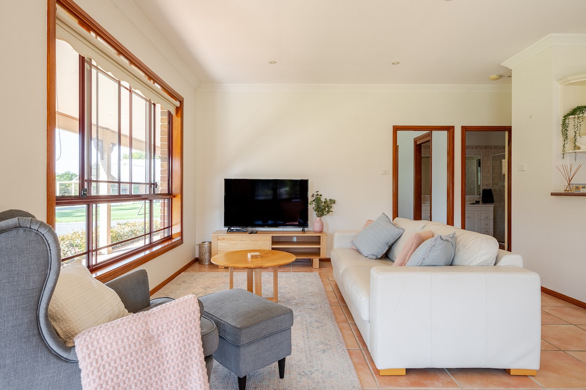 Modern amenities, private and comfortable residence located away from main house. Additional COVID-19 disinfection process in place for the safety of every guest. Our lovely place has a holiday chalet feel and is within walking distance of transport and shops. Tea, coffee, milk and cereal are provided on your arrival for your first night. Large grass / garden area for kids to play. We respectfully allow guests to have their own privacy and we are always contactable if you need anything.