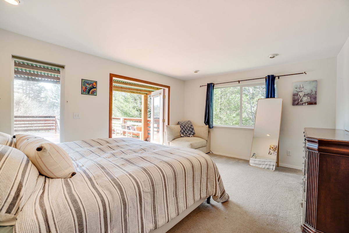 Bienvenido a The Wind and Tide, donde el bosque se encuentra con el mar. Nuestra casa recién remodelada está situada en tres acres de acantilado boscoso con vistas al Pacífico, justo al norte del pueblo costero de Trinidad. La tranquilidad te espera mientras te sumerges en el jacuzzi y te relajas junto a la hoguera, disfrutando de los sonidos de los leones marinos, las vistas de las ballenas migratorias y las puestas de sol y la observación de las estrellas en abundancia. A poca distancia en coche se puede ir a ver las pozas de marea, buscar ágatas y explorar el parque estatal Sue-Meg.